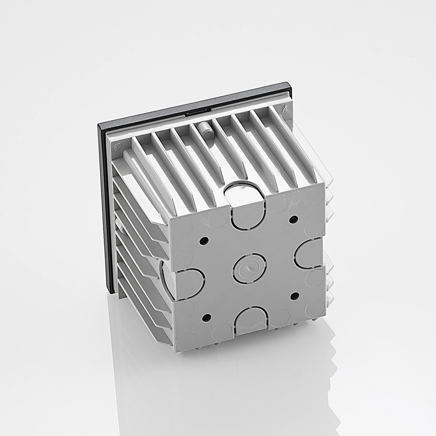 Lanti besitzt einen dezenten Charakter und integriert sich mühelos in verschiedenste Einrichtungsstile. Die Wandeinbaulampe ist aus Aluminium hergestellt und in einer dezenten, schwarzen Farbgebung gehalten. Ihr Körper verschwindet fast ganz in der Wand, nur ein schmales Viereck bleibt an der Oberfläche zurück. Sie kann mit entsprechenden Leuchtmitteln bestückt werden und ermöglicht eine freie Wahl der Lichtfarbe. Lanti eignet sich hervorragend für die Beleuchtung eines Flures oder eines Treppenaufganges und setzt schlichte Akzente an Wohnungswänden. Durch die Schutzart IP65 kann die Einbauleuchte auch für den Außenbereich verwendet werden, da sie gegen Staub und Strahlwasser geschützt ist.