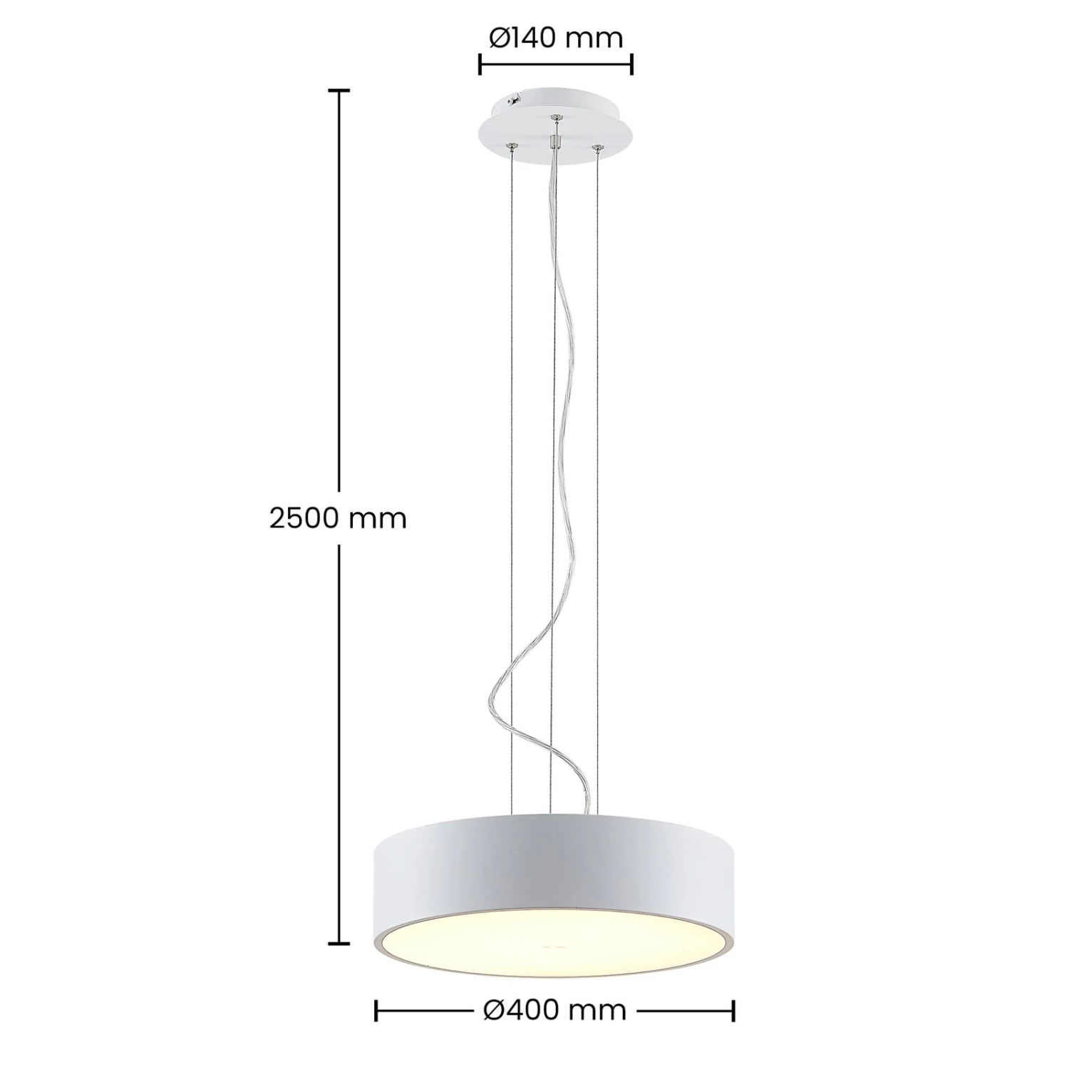 Weiße LED-Hängelampe Noabelle in zylindrischer Form, mit Metallschirm und vorab auswählbarer Lichtfarbe