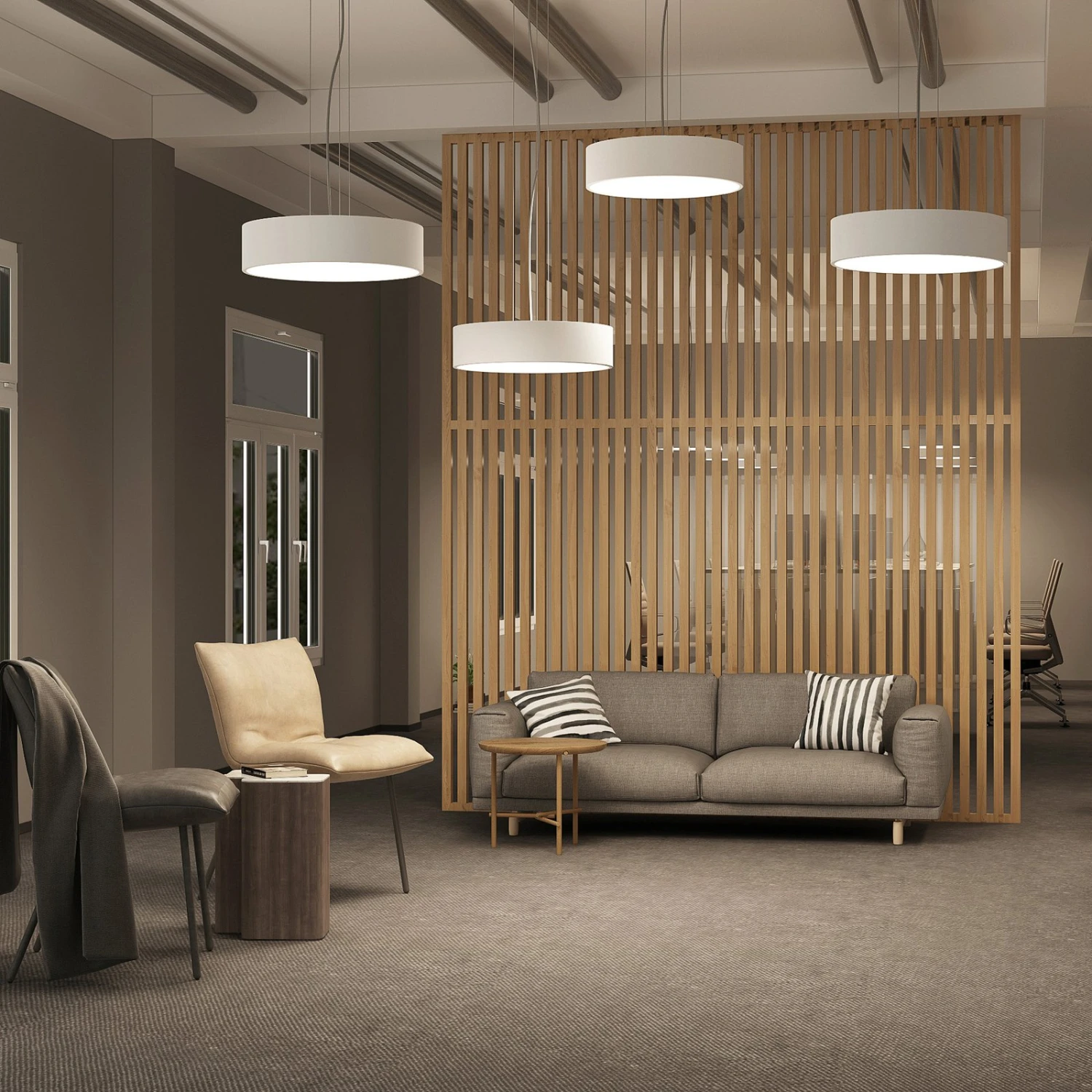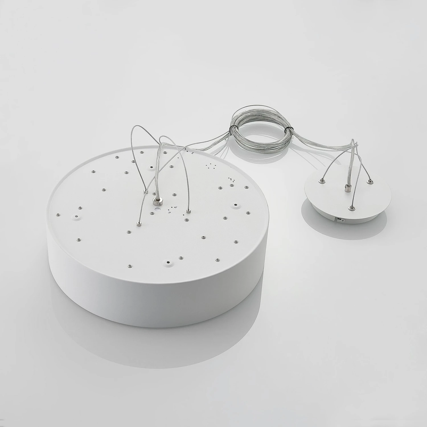Noabelle überzeugt mit einem minimalistischen, detailreduzierten Design und eignet sich so für alle besonders modernen Umgebungen, sei es im Wohnbereich oder für die gewerbliche Nutzung. Der LED-betriebene Lichtspender für die Hängemontage erweist sich dabei immer als stilvolles Einrichtungs- und Beleuchtungsobjekt, das viel Licht bringt. Da die LEDs der Hängeleuchte zu den besonders effizienten Lichtquellen zählen, wird dabei nur relativ wenig Strom verbraucht, doch die Leuchtkraft kann sich sehen lassen. Der Schirm ist wie auch der unterseitige Diffusor aus Acryl in Weiß gehalten und er besteht aus Metall. Mithilfe von filigranen Stahlseilen ist er im Raum aufgehängt und wirkt dabei fast schwebend, was die Leichtigkeit im Ausdruck erhöht. Damit man die LED-Hängeleuchte möglichst vielseitig einsetzen kann, lässt sich ihre Lichtfarbe über einen DIP-Schalter bei der Montage einstellen und Noabelle kann sowohl warmweiß als auch universalweiß leuchten – perfekt zum Wohnen und Arbeiten.