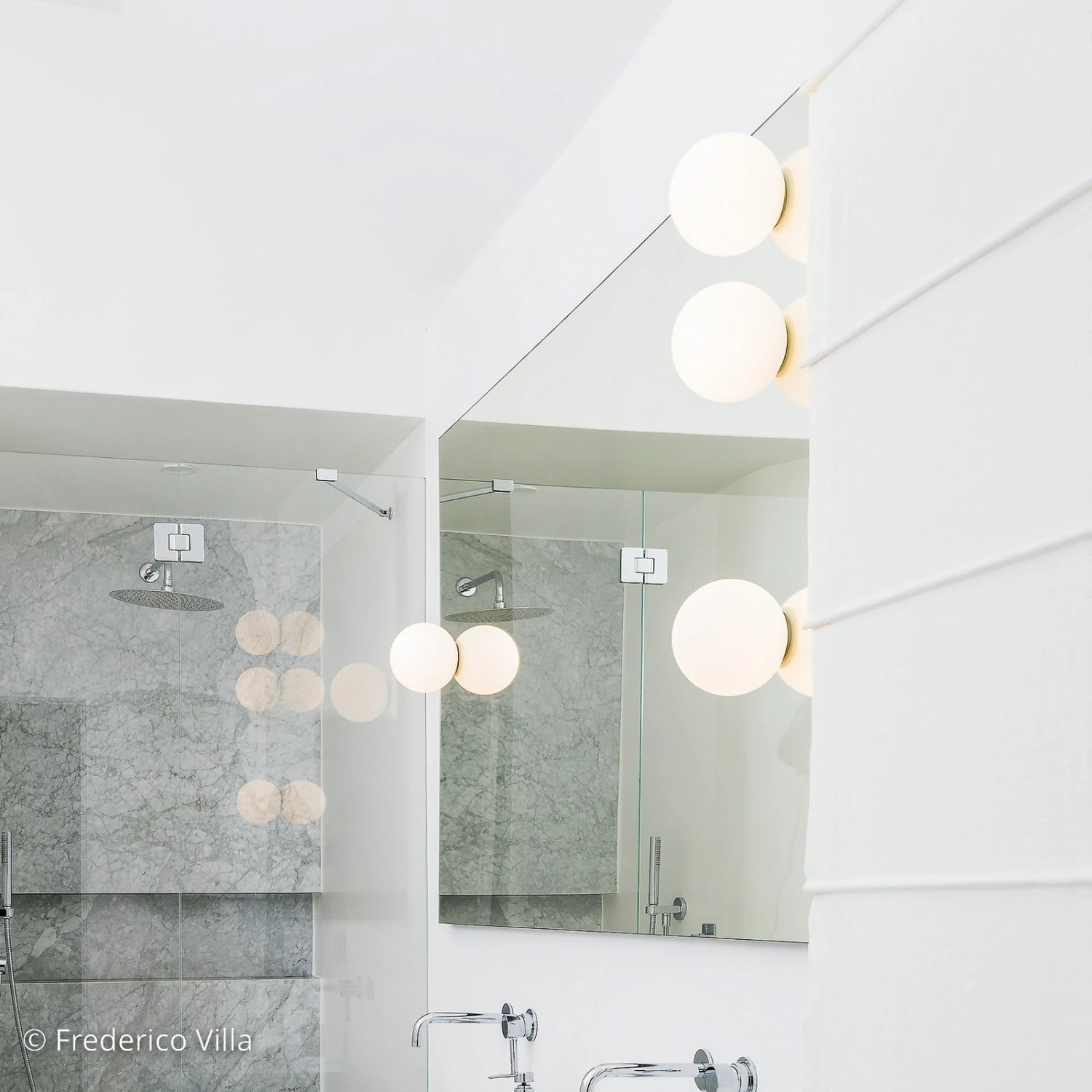 Dioscuri – kugelförmige Wandleuchte mit Schutz gegen Strahlwasser