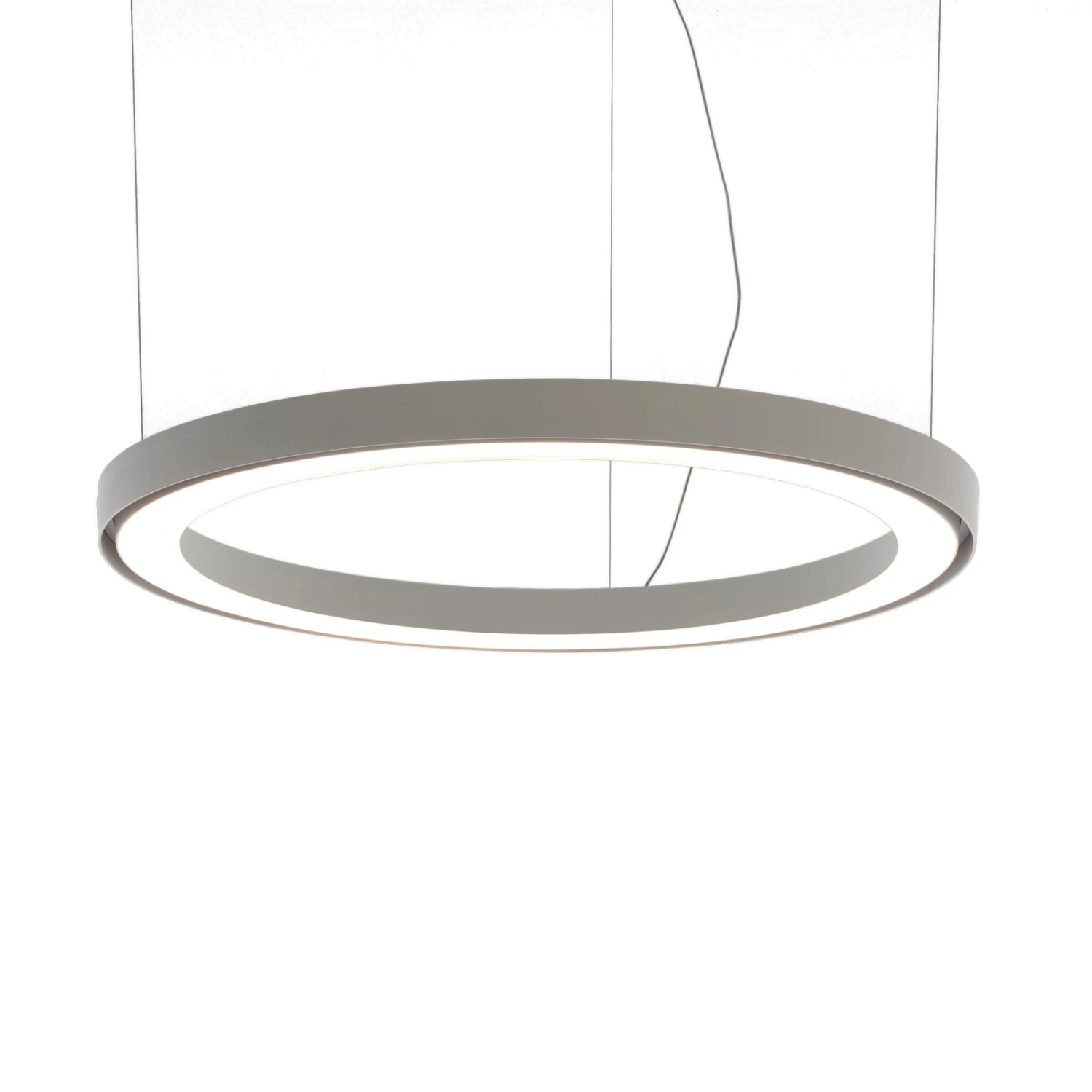 Das Grundelement der LED-Hängelampe ist ein ringförmiger Kreis, der das warme Licht Richtung Boden abgibt. Die Leuchte ist sehr zurückhaltend gestaltet und ist durch ihre klare Formsprache und dezente Farbgebung in der Lage, sich in jeder Raumkonstellation problemlos einzufügen. Sie eignet sich sowohl für den privaten Gebrauch in Küche, Wohn- oder Esszimmer als auch als Hängeleuchte für Veranstaltungssäle, Konferenzräume oder Büros.