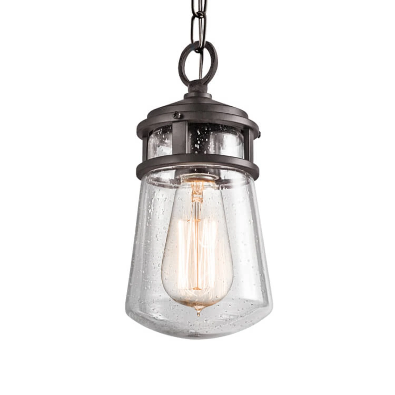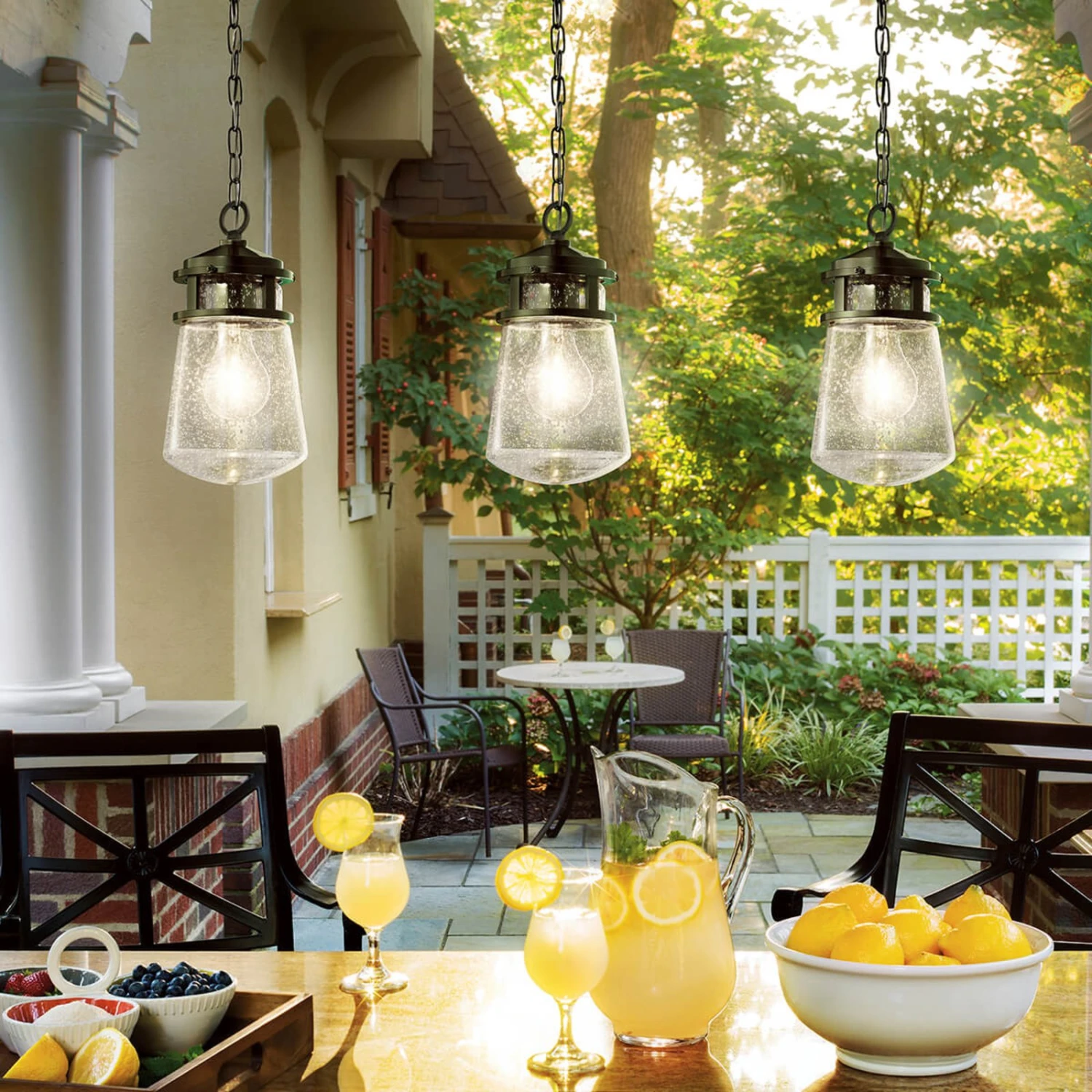 Die klaren Strukturen in der Formgebung sowie die Kettenabhängung verleihen der Pendelleuchte Lyndon eine ansprechende Optik, die sie zur trendigen Lichtquelle für zahlreiche Außengestaltungen macht.