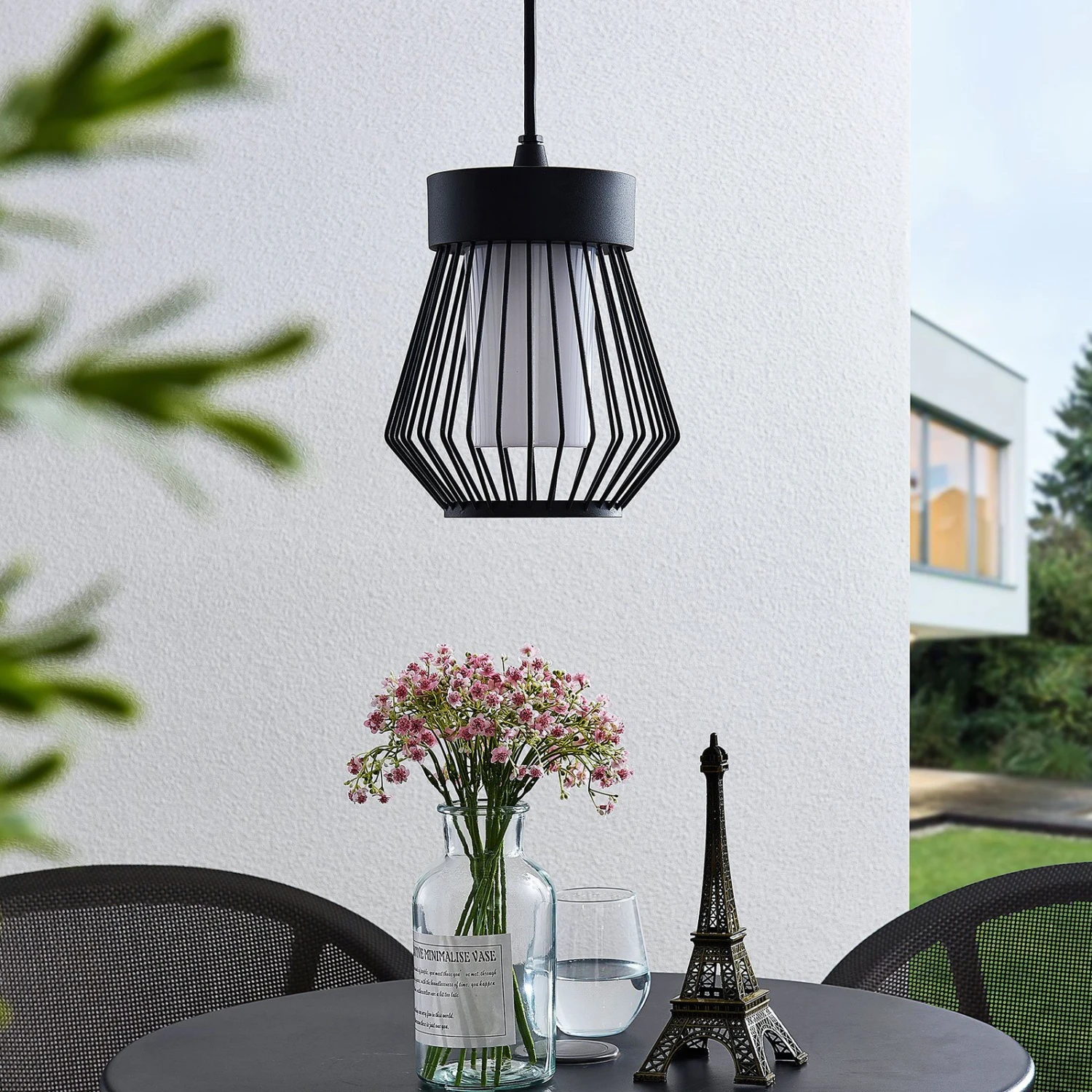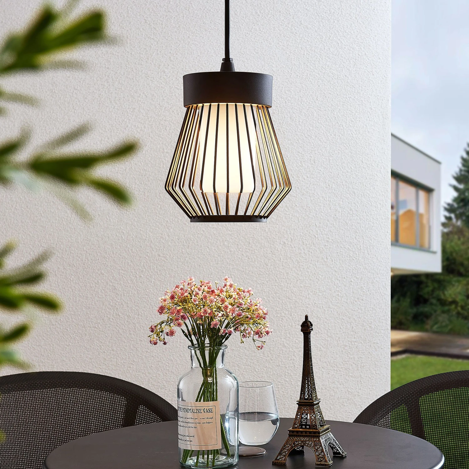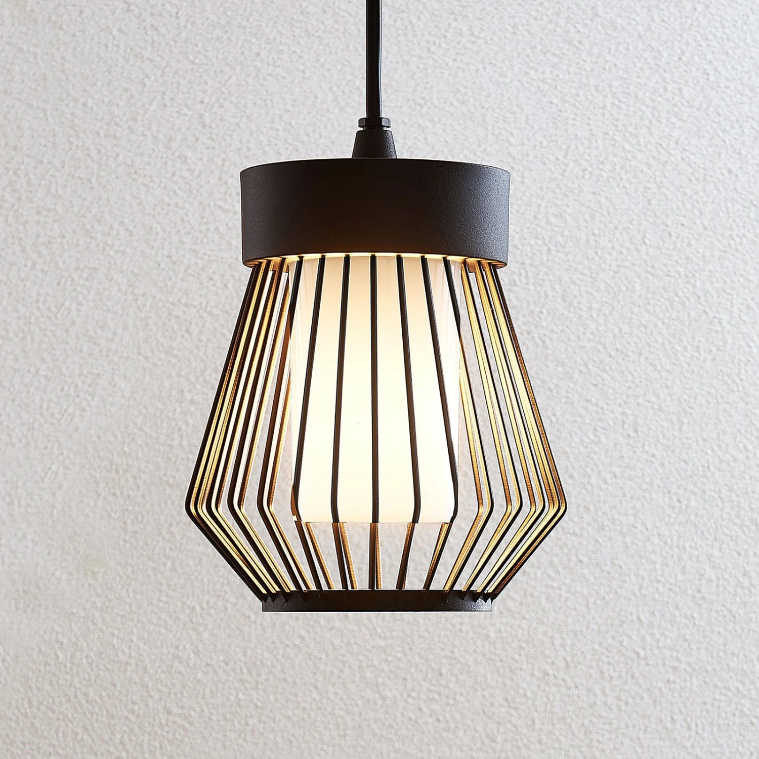 Außen-Pendelleuchte Vajana mit Schirm in Käfigform und weißem Innenschirm aus Kunststoff