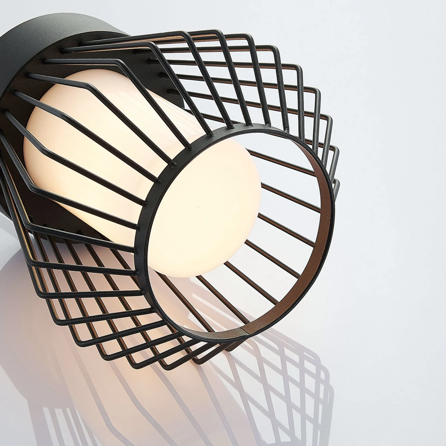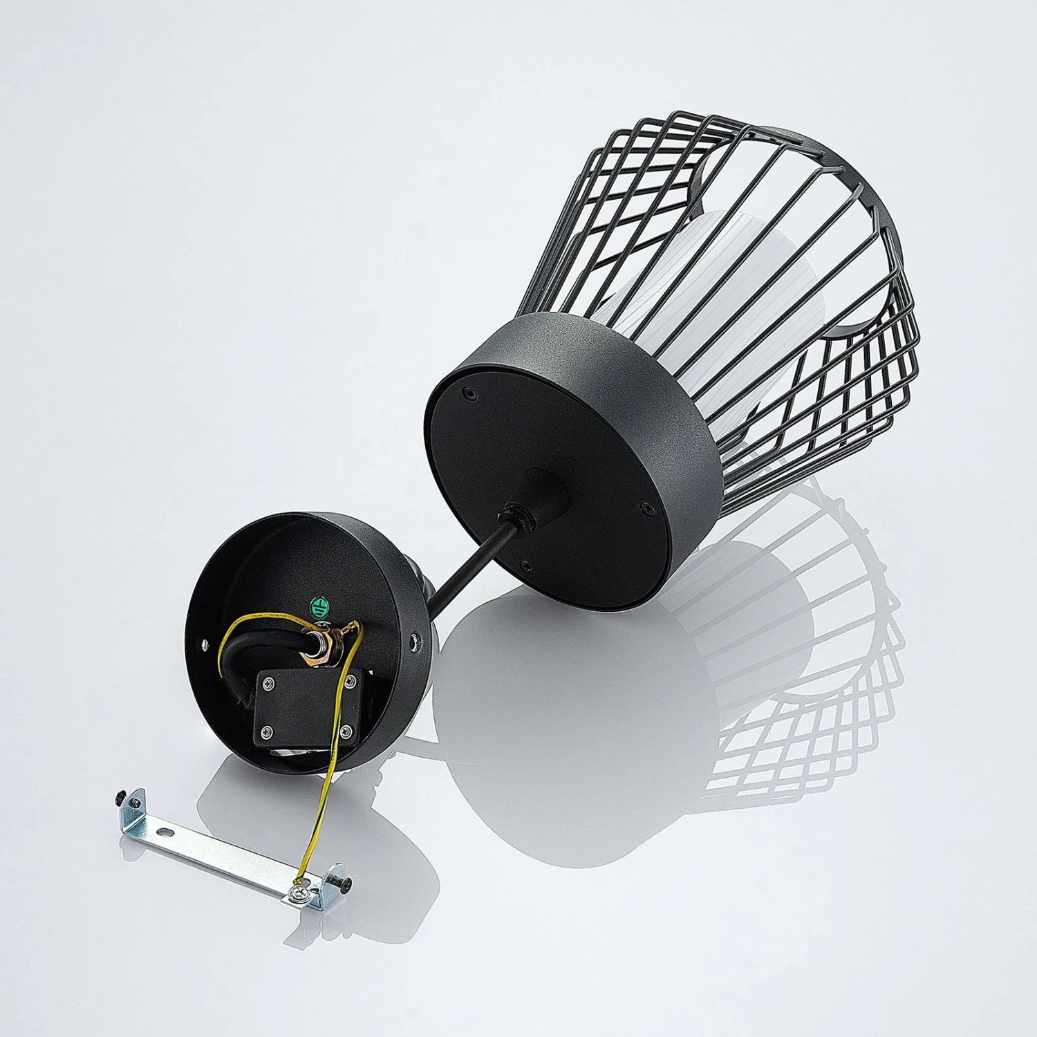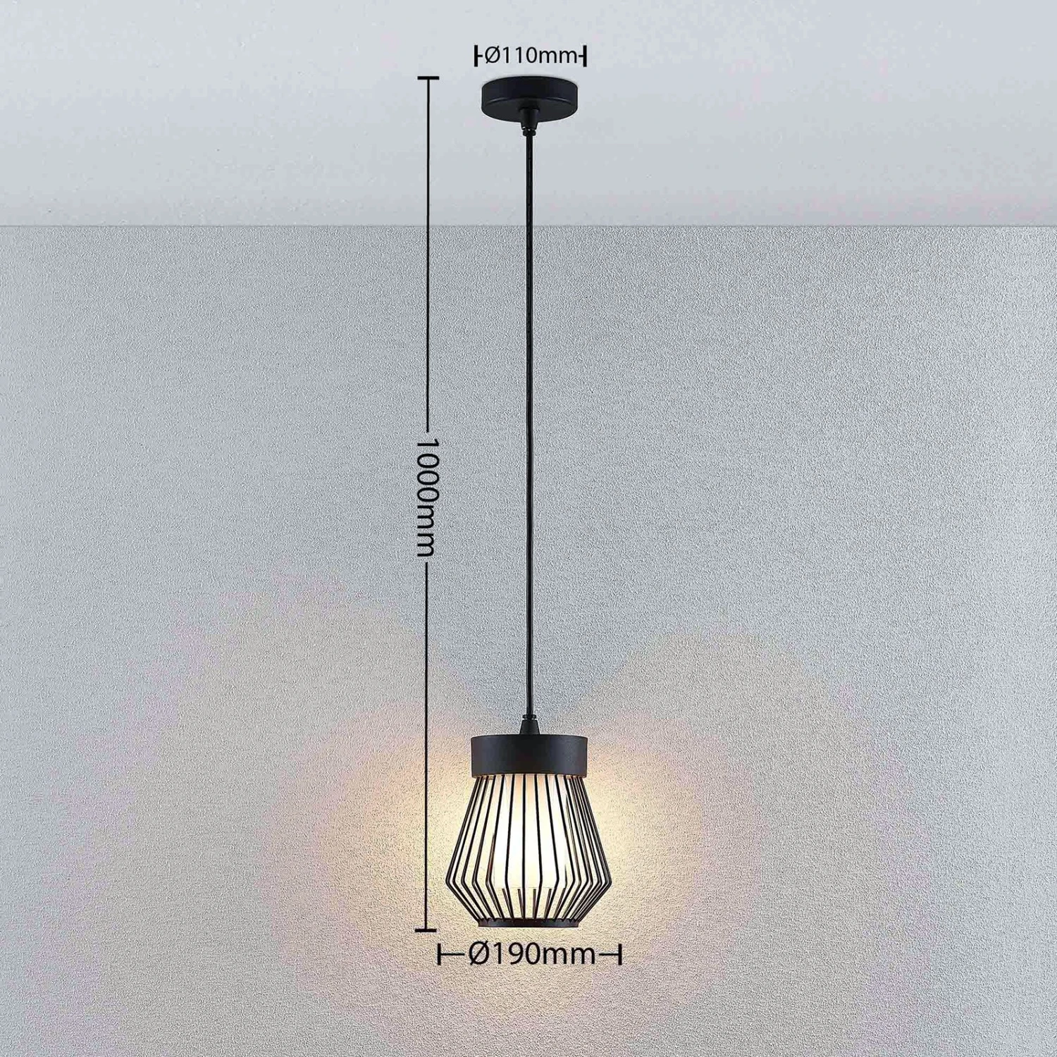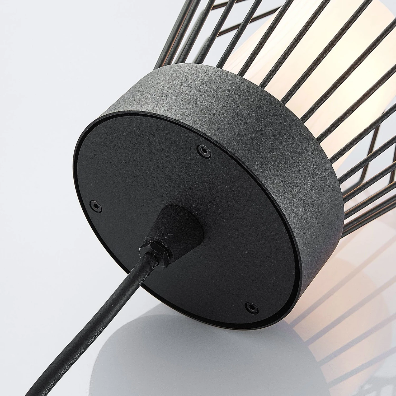 Außen-Pendelleuchte Vajana mit Schirm in Käfigform und weißem Innenschirm aus Kunststoff
