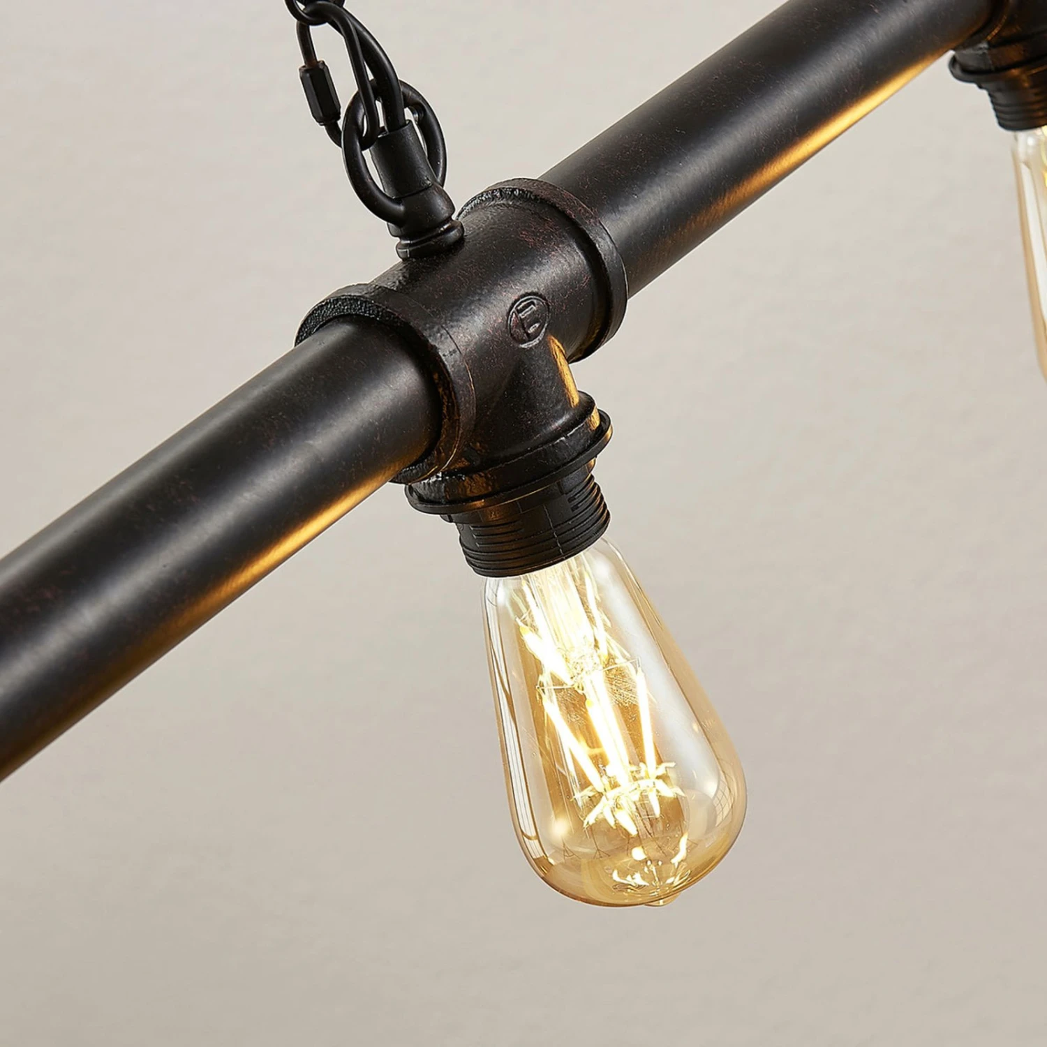 Ideal für die moderne Tischbeleuchtung: Die Hängeleuchte Josip besteht aus einem langen, röhrenähnlichen Gestell, welches an einer Kettenabhängung befestigt ist und für sechs E27-Lampen ausgelegt ist. Das Design erinnert ein wenig an ein altes Wasserrohr, was perfekt zu modernen Einrichtungen im Industriestil passt. Bei Einsatz von dekorativen Filament- oder Retrofit-Lampen, wird der industrielle Look komplettiert. Über einem langen Esstisch platziert, kommt die Balkenpendelleuchte Josip perfekt zur Geltung.