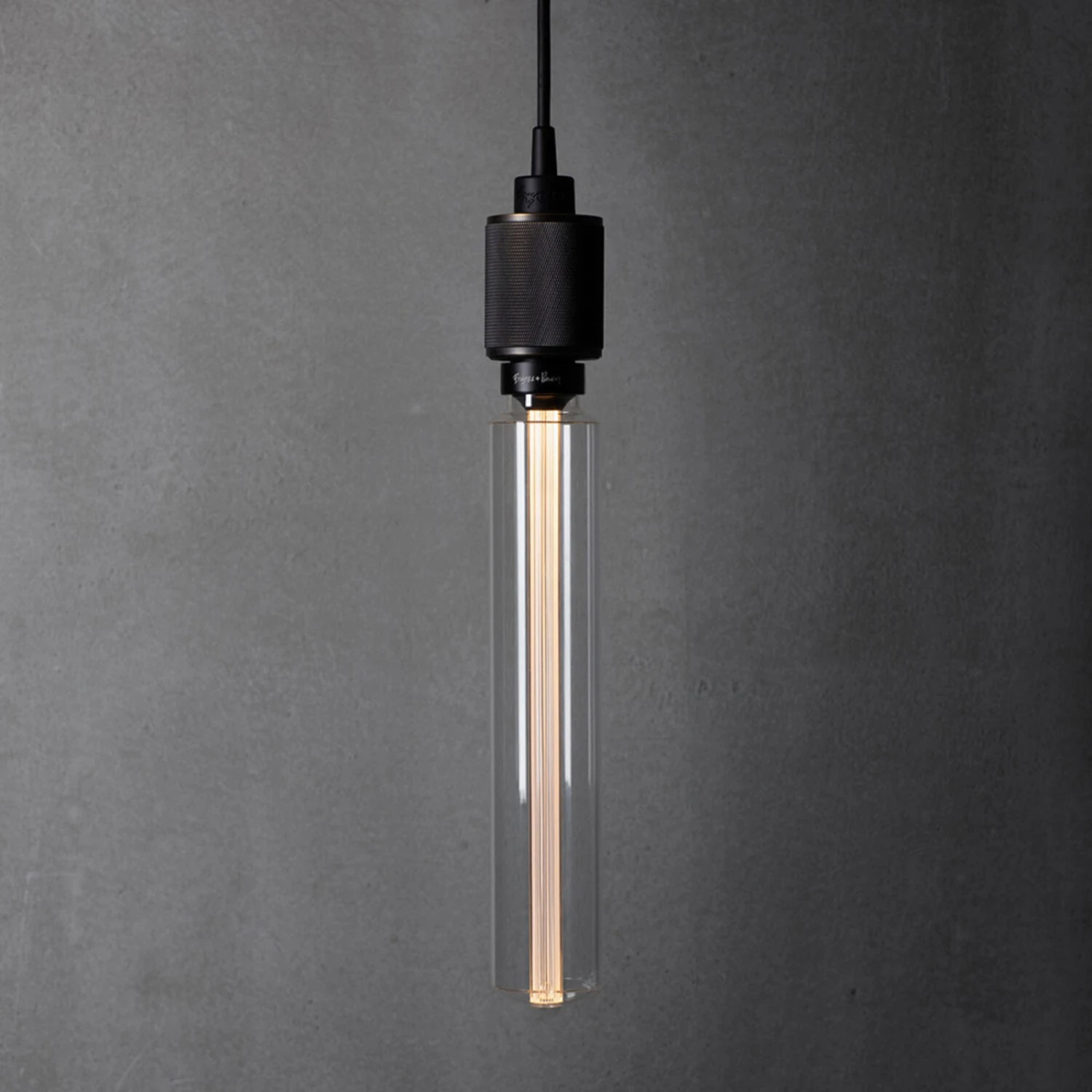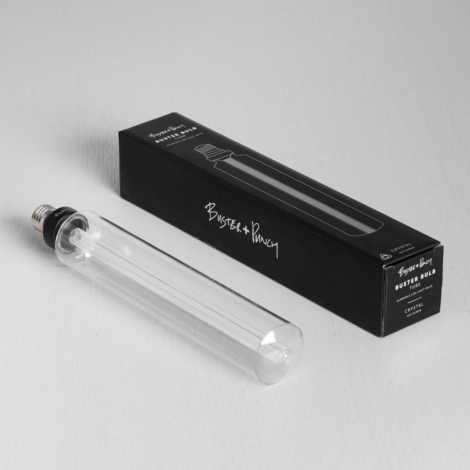 Eine schöne Optik macht dieses Leuchtmittel zum Blickfang in vielen Leuchten. Die lange, röhrenförmig gestaltete Lampe mit einem Kolben aus transparentem Polycarbonat spendet warmweißes Licht und lässt sich dimmen. Der vertikale Harzlichtleiter prägt das Erscheinungsbild der Lampe; er sorgt für eine direkte Lichtabgabe nach unten und ein dezentes Licht zu den Seiten.