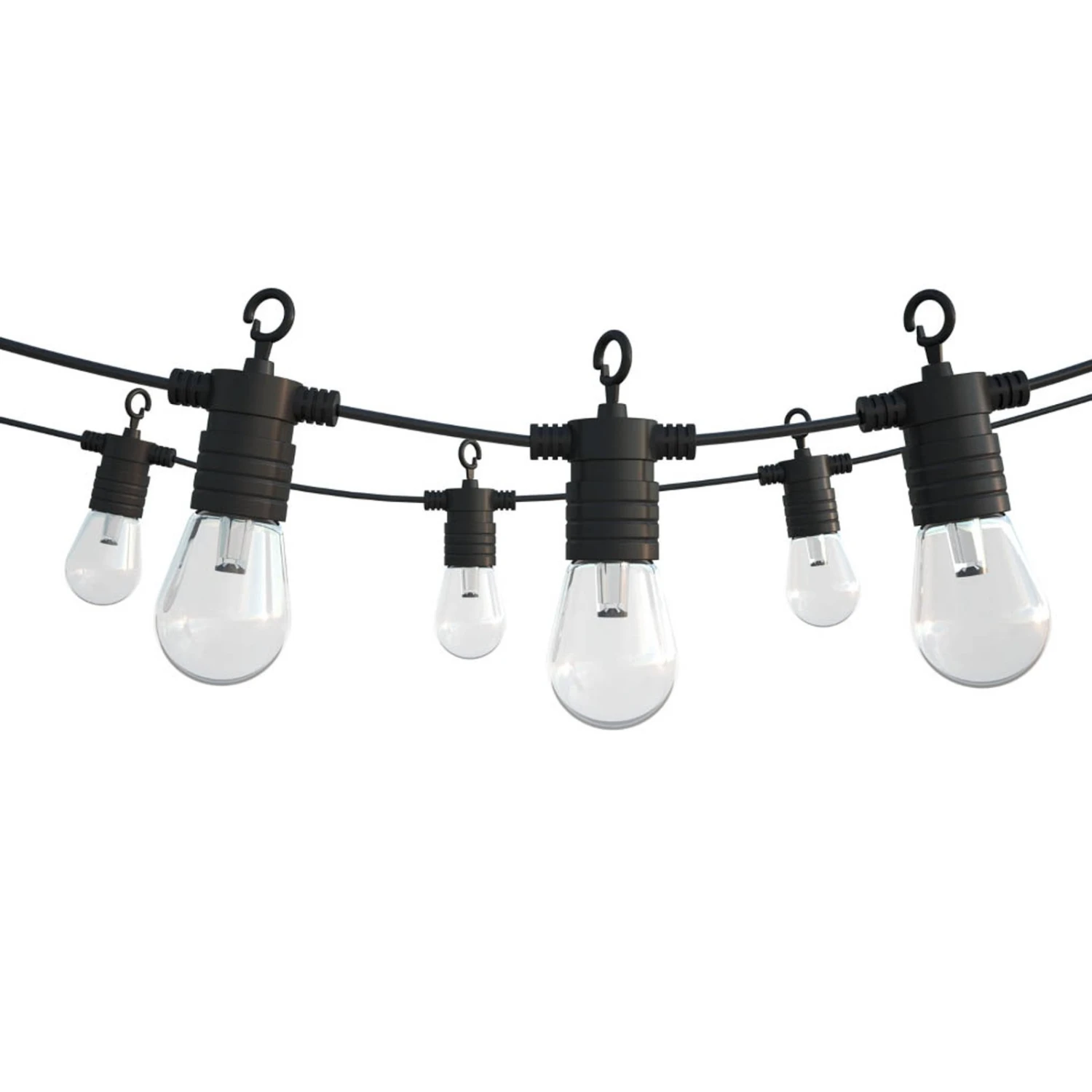 Smart Outdoor Partystring hat eine Gesamtlänge von 10 Metern und wird per Stecker mit Strom versorgt. Ein Highlight für jede Party im Außenbereich, wobei auch einer Verwendung im Innenbereich nichts entgegensteht.