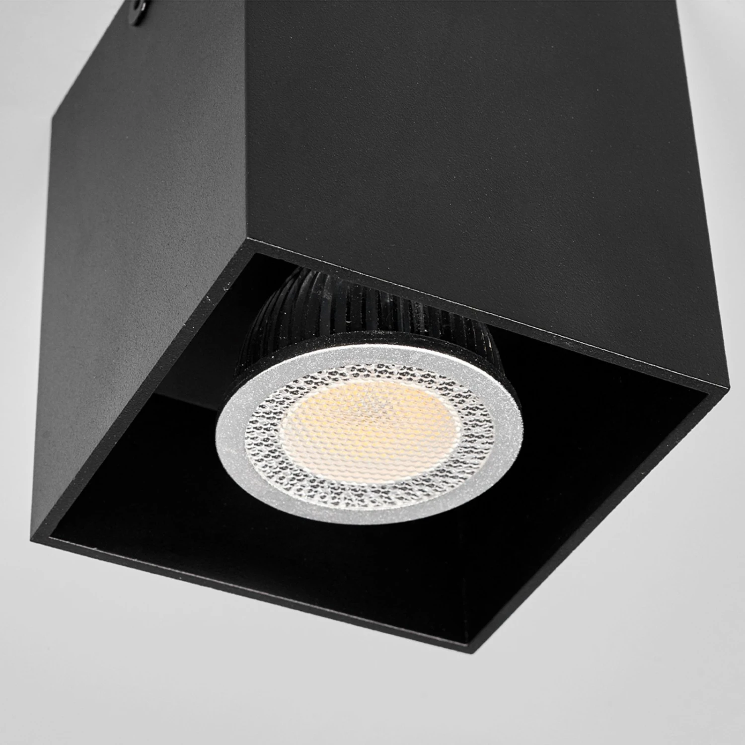 Schwarzer, eckiger Aufbau-Deckenspot Carson