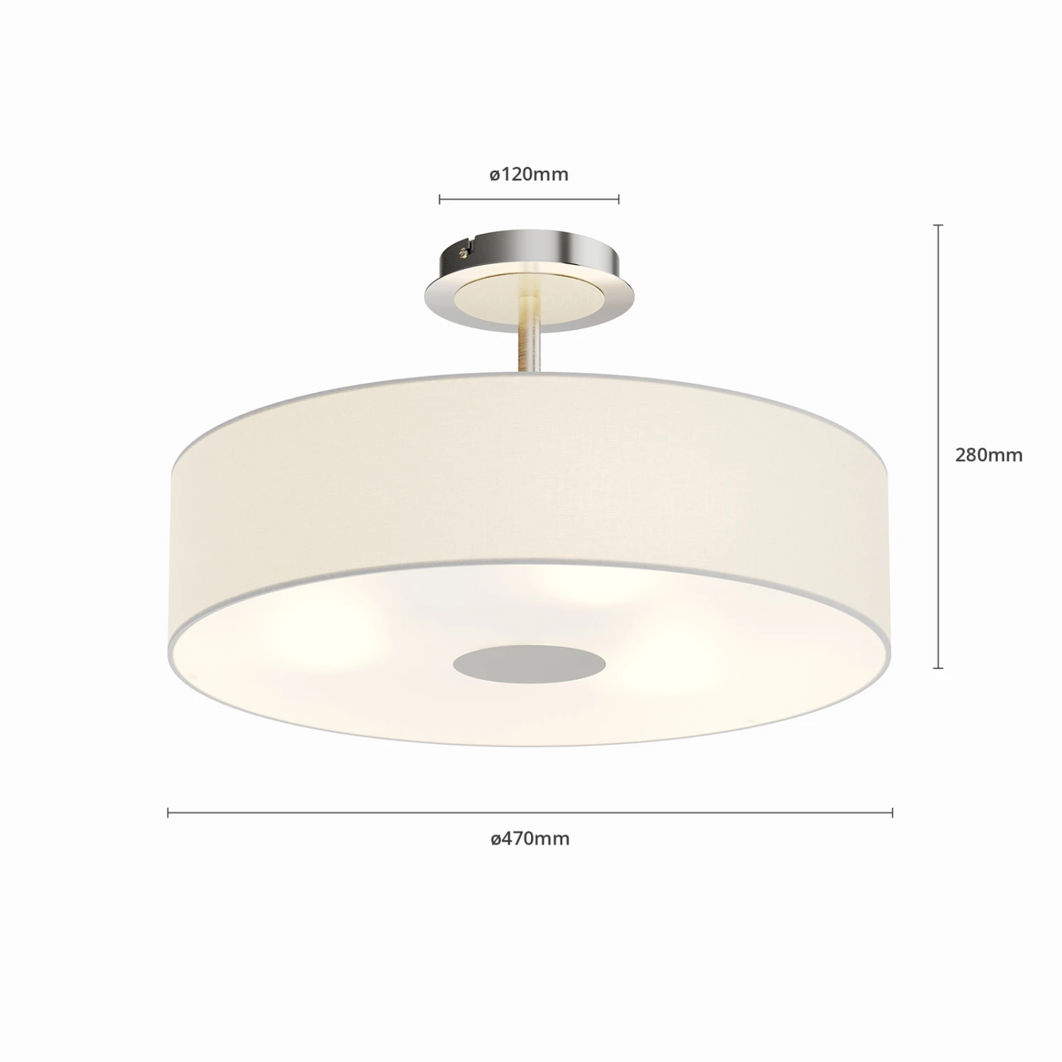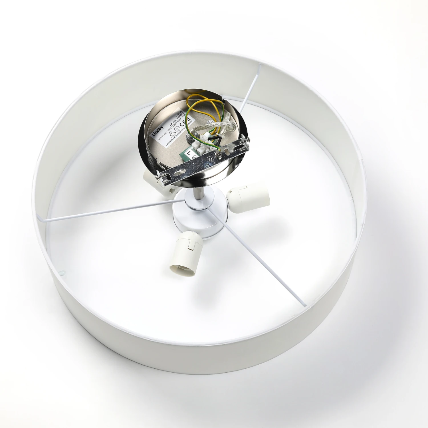 Ein ganz besonders zeitloses Design kennzeichnet die Deckenleuchte Josia, deren weißer Stoff geradezu universal verwendbar ist. An der Unterseite befindet sich ein satinierter Diffusor aus Glas, der eine besonders weiche Verteilung des Lichts bewirkt, so dass es wohnlich und einladend erscheint. Durch die Ausstattung mit insgesamt 3 Leuchmitteln wird eine angemessene Helligkeit erzielt, die nicht nur im Ess- und Wohnzimmer willkommen ist, sondern auch in Flur und Schlafzimmer für das passende Licht sorgt. Auch dort wirken Stoff-Deckenleuchten stets stilvoll und elegant. Nicht nur die Verwendung von klassischen Glüh- oder den etwas energieeffizienteren Halogenlampen ist möglich, ebenso können LEDs und Energiesparleuchtmittel eingesetzt werden.