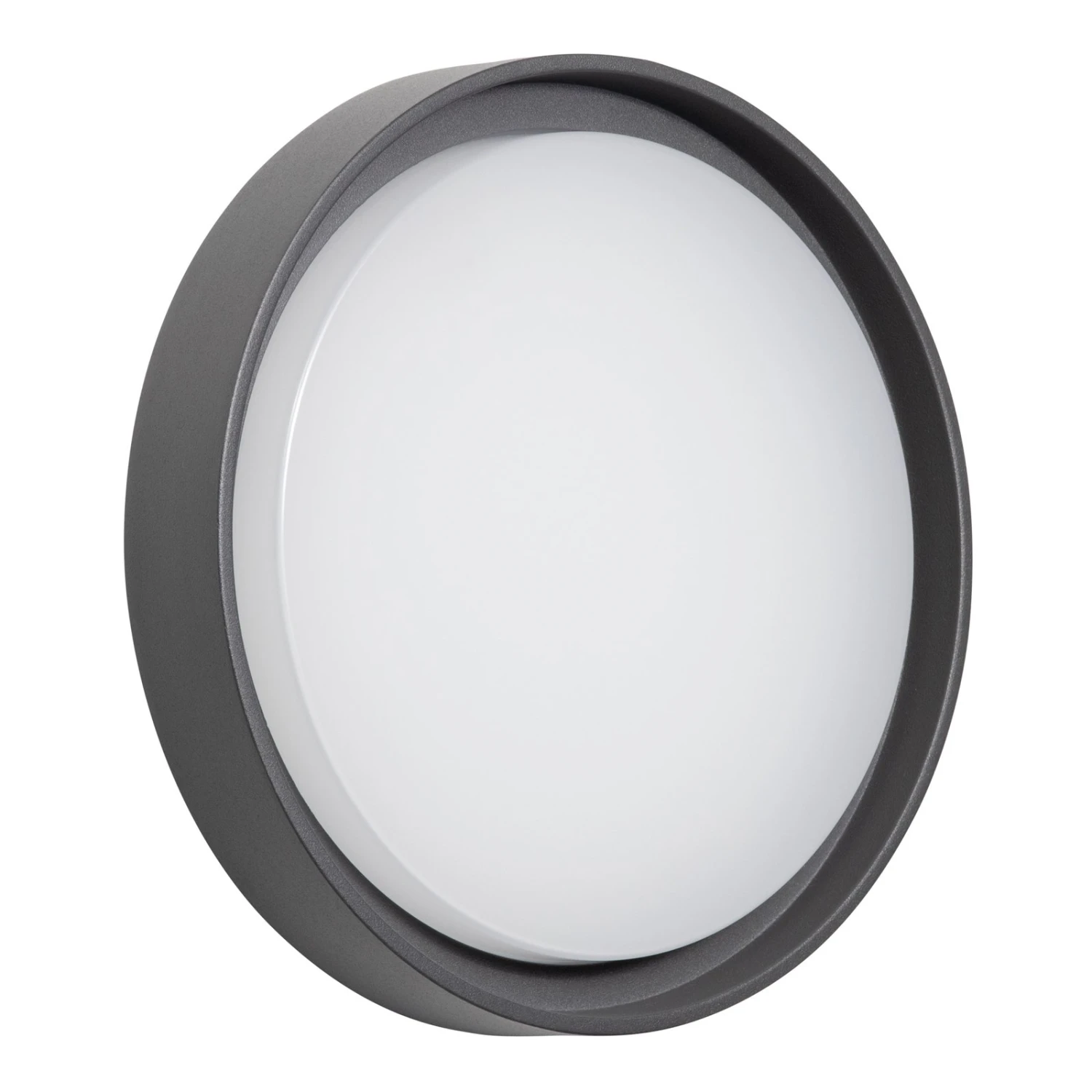 Die moderne, rund geformte LED-Außenleuchte WALLround bietet warmweißes Licht für eine homogene, großflächige Allgemeinbeleuchtung. Sie besteht aus einem grauen Aluminiumgehäuse mit einem Diffusor aus Polycarbonat. Der Aufbau ist gegen Strahlwasser und mechanische Einwirkungen geschützt. Dank der mitgelieferten EasyBase-Plattform gestaltet sich die Montage der Leuchte einfach und schnell.