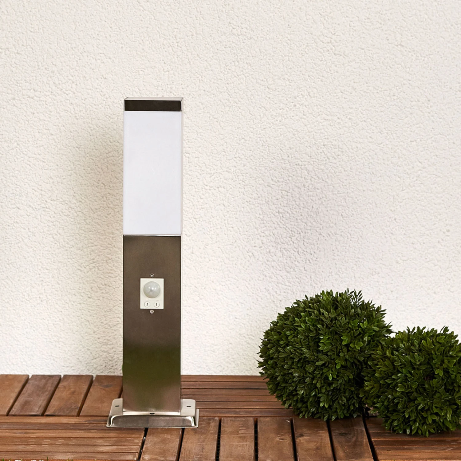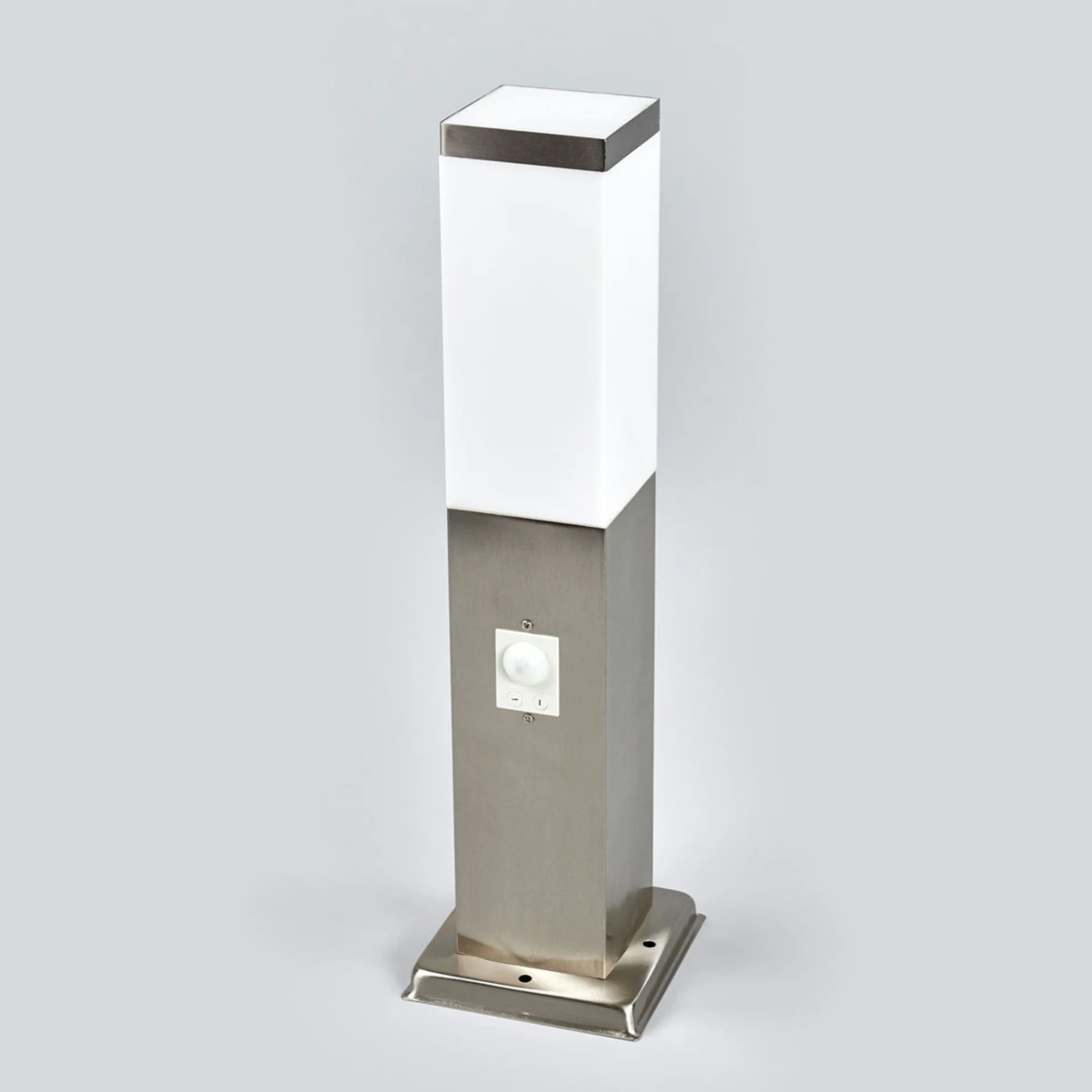 Lorian – mit Sensor bestückte Edelstahl-Sockelleuchte in eckiger Form