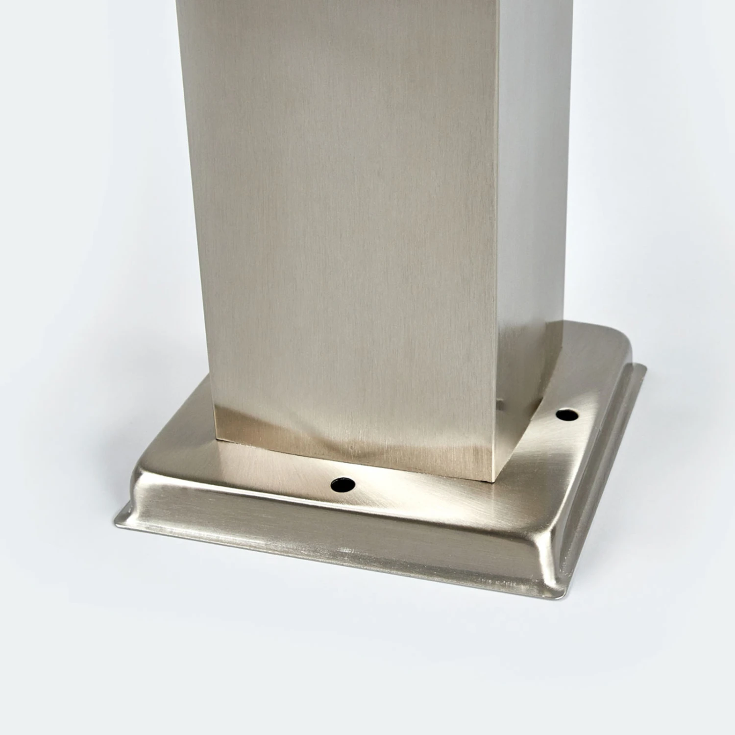Sowohl der Sockel als auch der Leuchtenkörper selbst sind bei dieser Edelstahl-Sockelleuchte in eckiger Form gehalten, wodurch die Leuchte durchaus modern wirkt, aber nicht ohne auch einen zeitlosen Charakter zu besitzen. Der Lichtschein wird von den meisten Personen als angenehm empfunden, denn dank der weißen Kunststoffoberfläche erfolgt eine relativ weiche, blendungsfreie Verteilung des Lichts.