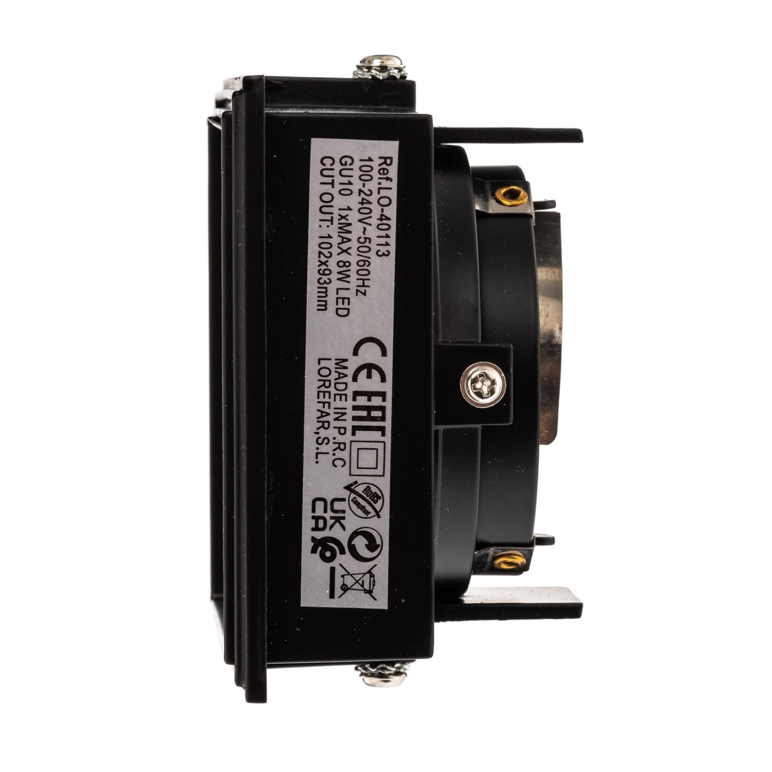 Der eckige Einbauspot Hyde ist ideal für die gezielte Raumbeleuchtung. Das einzusetzende GU10-Leuchtmittel, das nicht im Lieferumfang enthalten ist, kann bequem um 30° geschwenkt werden, so dass im Flur oder Wohnzimmer jeder gewünschte Bereich gezielt erhellt werden kann. Durch die rahmenlose Bauweise fügt sich Hyde perfekt in die Decke ein und wirkt somit nahezu unauffällig und dezent. Passende Leuchtmittel sind über das Zubehör erhältlich.