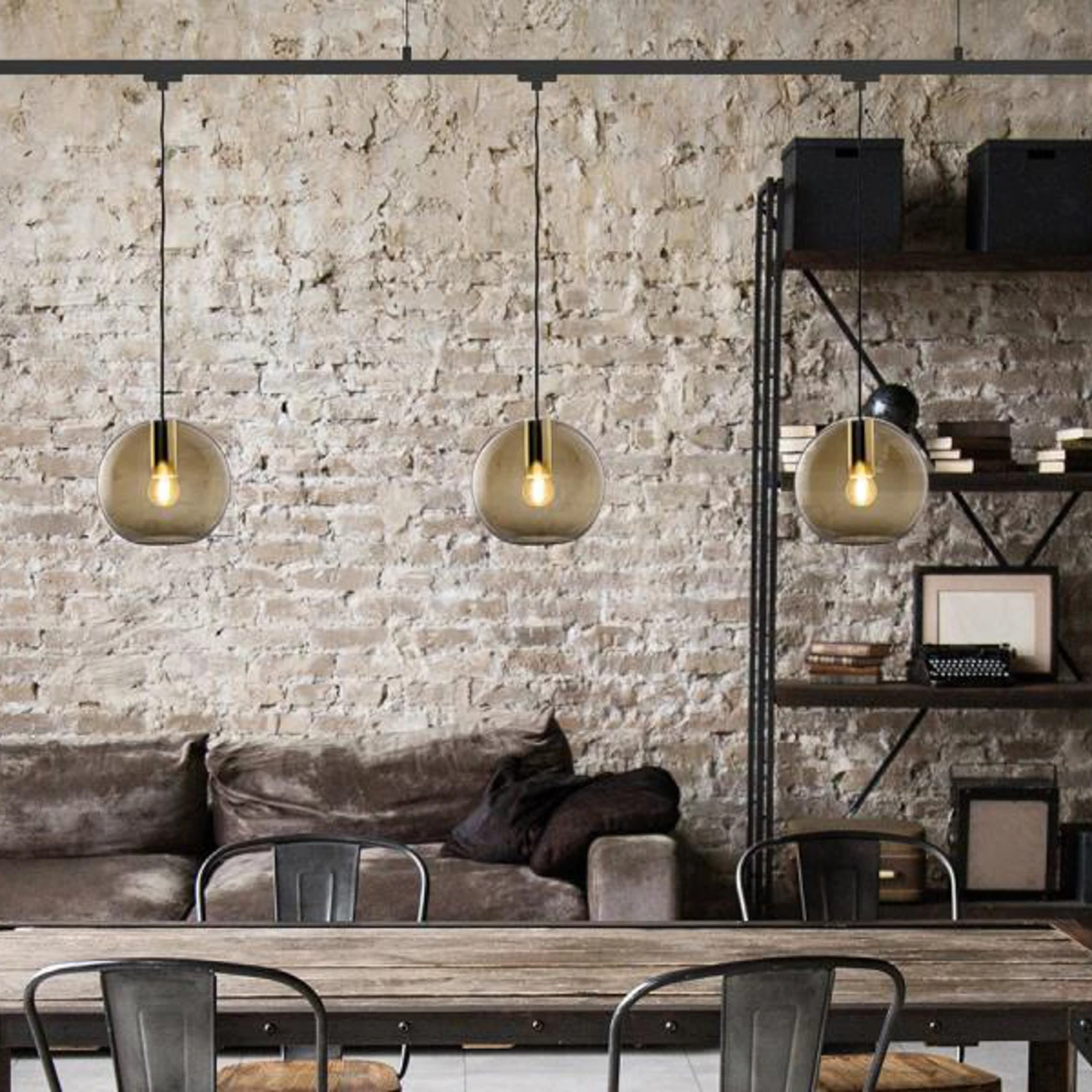 Dieser Schirm aus Glas in rauchgrauer Tönung ist eine Alternative zur Ausstattung einer Hängeleuchte Loon.