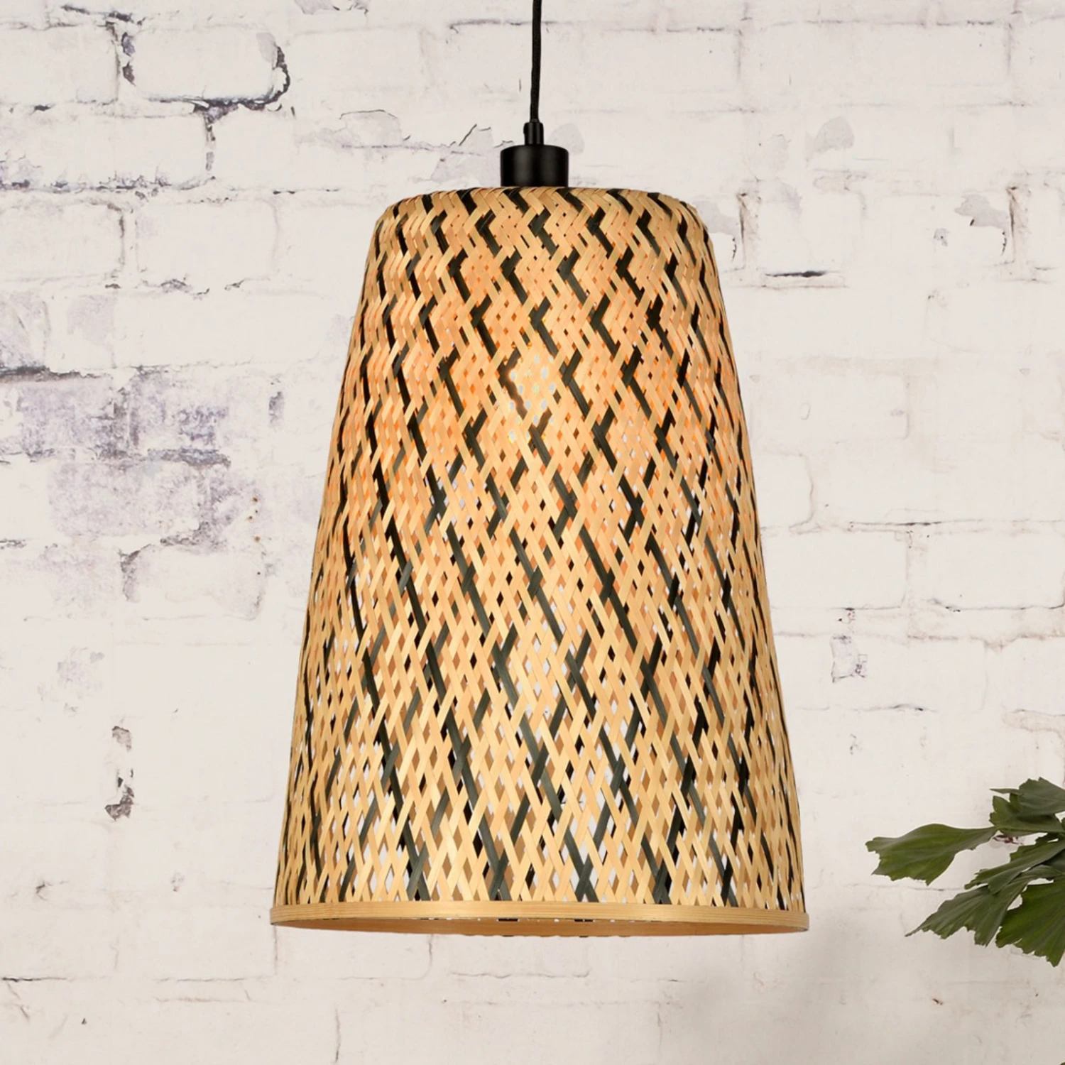 Konisch geformte Hängeleuchte Kalimantan aus Bambus