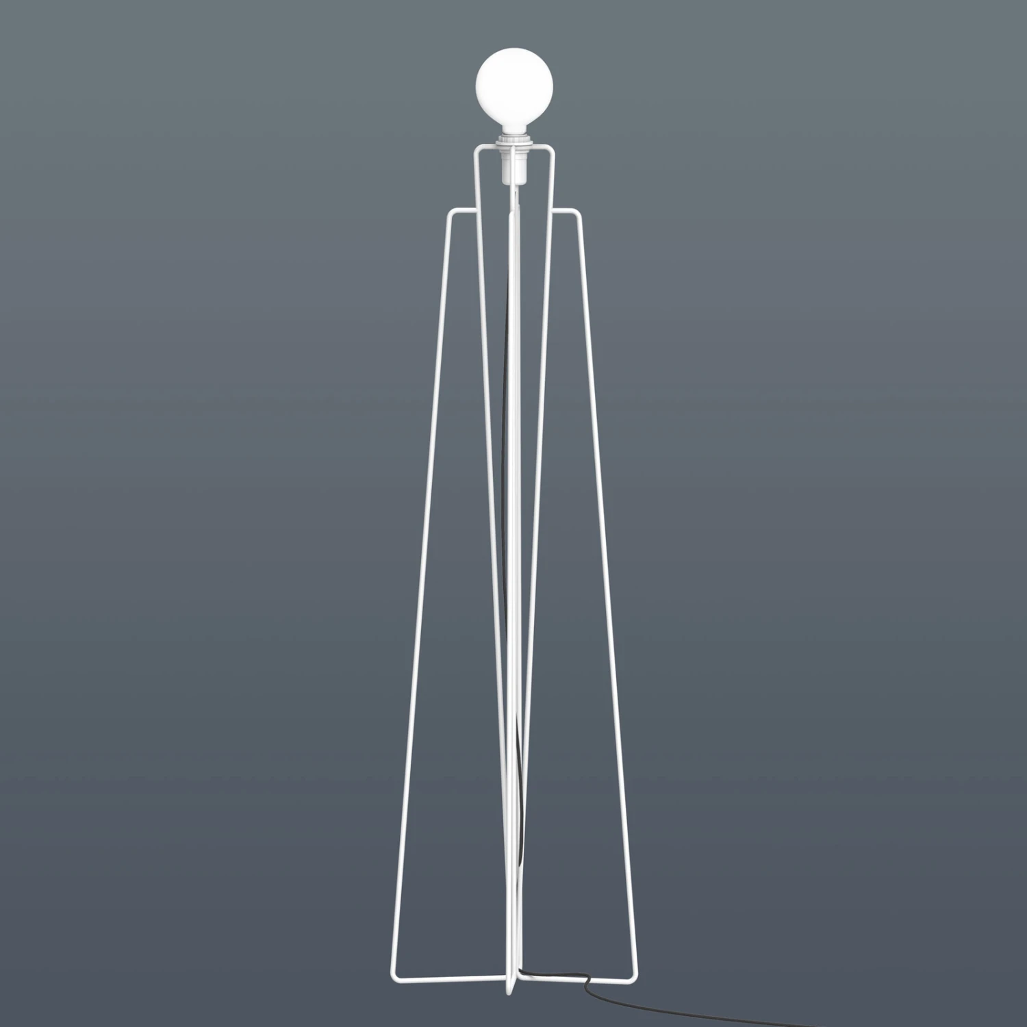 LED-Stehleuchte Model M1 mit filigranem Stahlgestell und Opalglas-Schirm in großer Birnenform