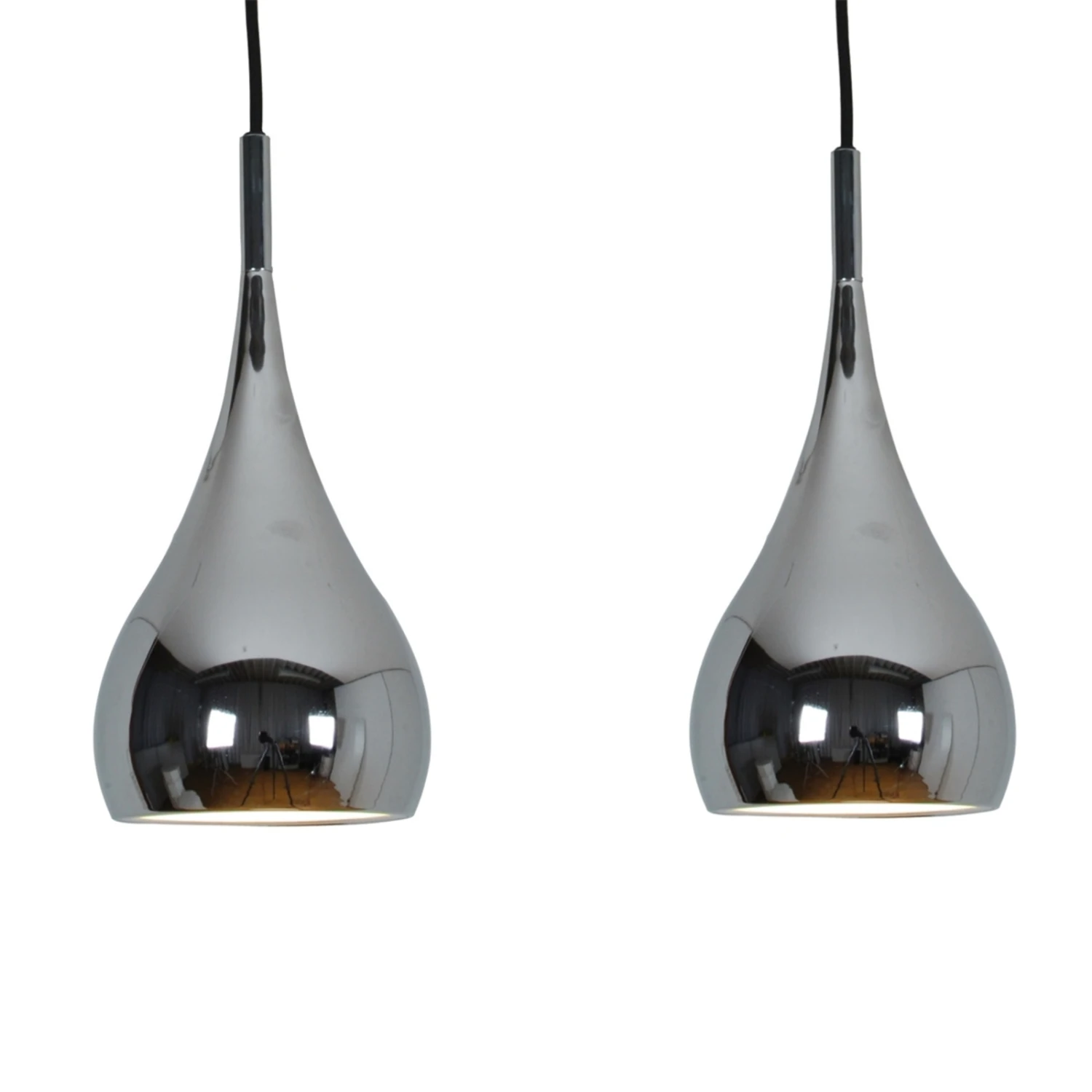 Mit ihren beiden chromglänzenden Schirmen, die sich in Form von Tropfen präsentieren, bereichert die Hängeleuchte Anja eine jede Küche. Auch im Esszimmer über dem Tisch macht sie eine gute Figur. Bestückt wird Anja mit zwei 40 Watt starken Glühlampen mit E27-Fassung. Es können auch Energiespar- oder LED-Leuchtmittel eingesetzt werden.