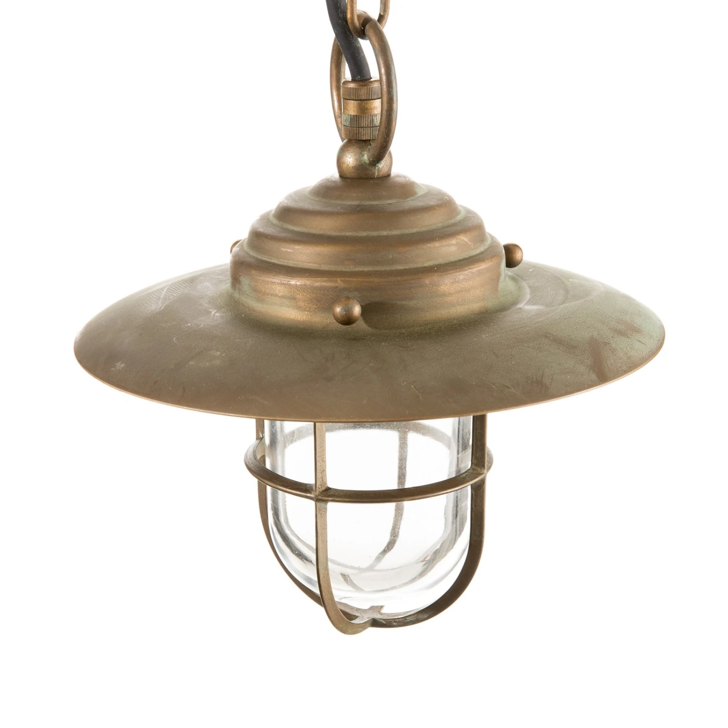 Antik aussehende Hängeleuchte Bruno aus Messing