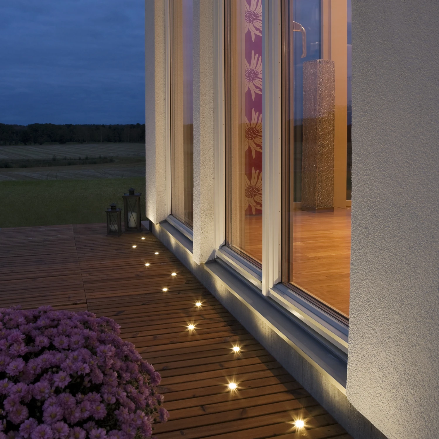 Die aus Kunststoff gefertigten Bodeneinbaustrahler Mini werden hier in einem praktischen 6er-Paket inklusive Kabel und passendem Transformator geliefert. Das Niedervolt-System verbindet die einzelnen Strahler mit einem Kabel miteinander und lässt sich mit einem 3er-Set (siehe Zubehör) erweitern. Die einzelnen Bodeneinbaustrahler werden hier mit einem Abstand von ca. 2m zueinander montiert. Ideal zum Beispiel für Bereiche an und um die Terrasse.