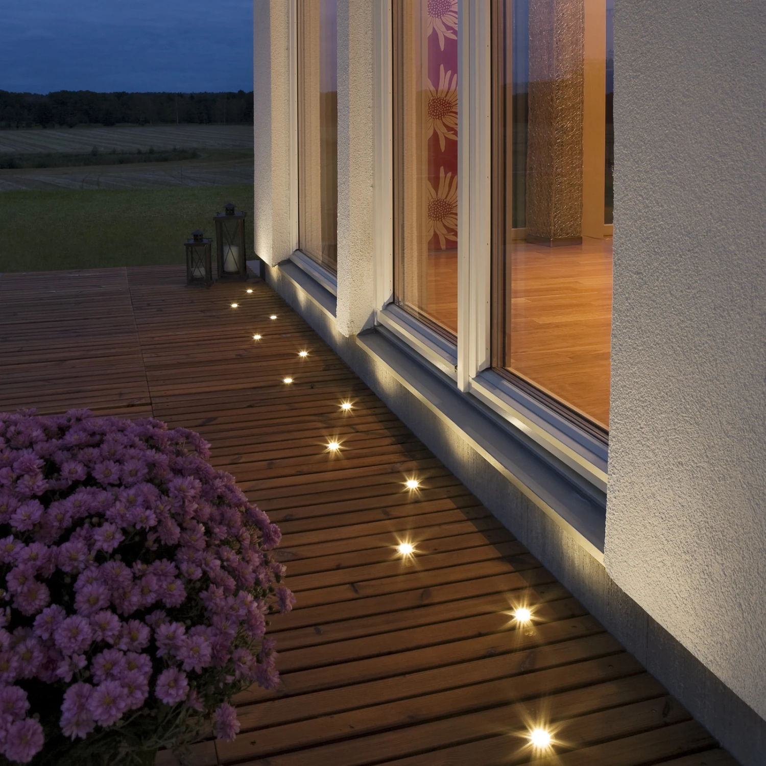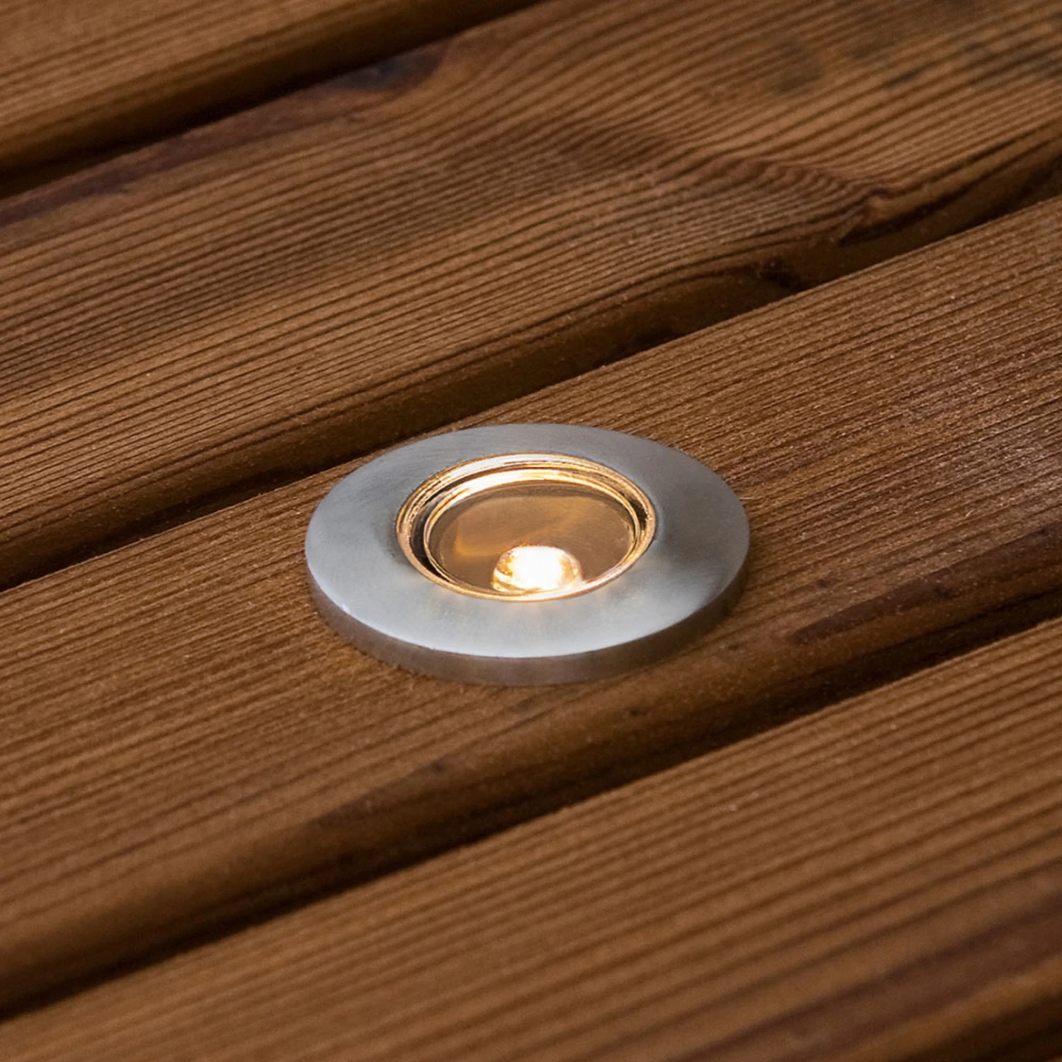 Die aus Edelstahl bestehenden Bodeneinbauleuchten sind als 3er-Packung die ideale Erweiterung zu einem bestehendem System mit vorhandenem Transformator.