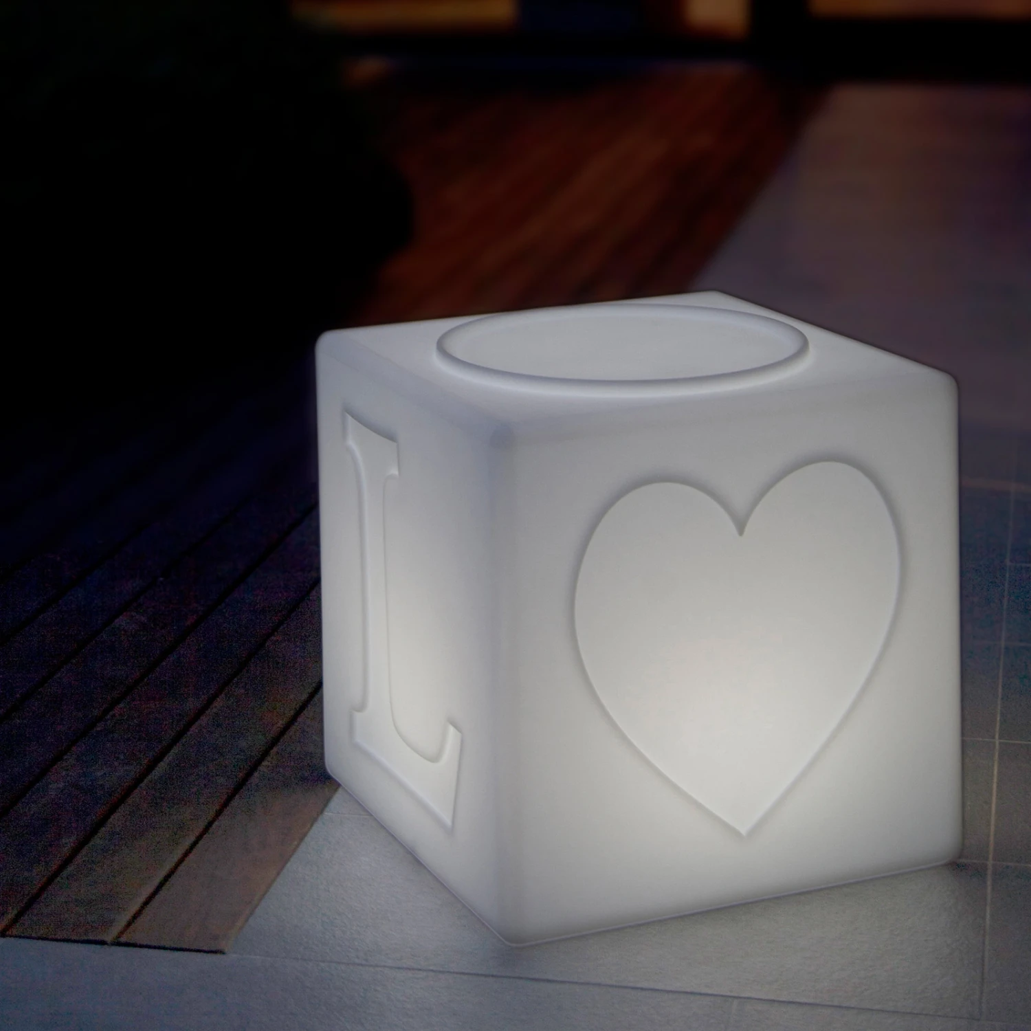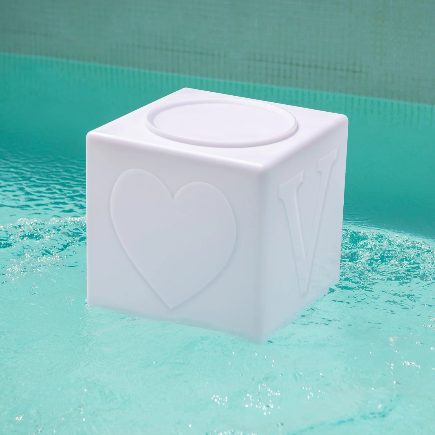 Schwimmfähige LED-Akkuleuchte The LOVE lamp™ als Würfel, dimmbar