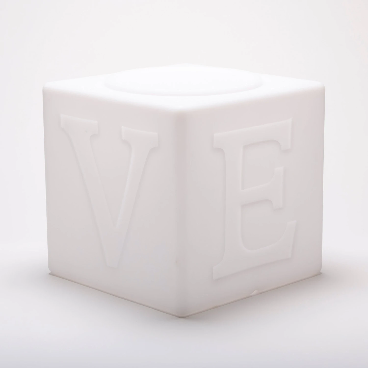 The LOVE lamp™ bringt einen dekorativen Akzent in den Außenbereich und überzeugt mit Flexibilität. Die Leuchte dient als verspielter Beistelltisch, Sitzgelegenheit oder einfach als stimmungsvolles Lichtobjekt für den Außenbereich. Ihr würfelförmiger Körper ist aus bruchfestem, wasserdichten Kunststoff gefertigt und hat an jeder Seite einen Buchstaben eingeprägt. Ergänzt man sie mit mehreren Exemplaren, entsteht eine leuchtende Säule oder Reihe, die das Wort „LOVE“ ergibt.