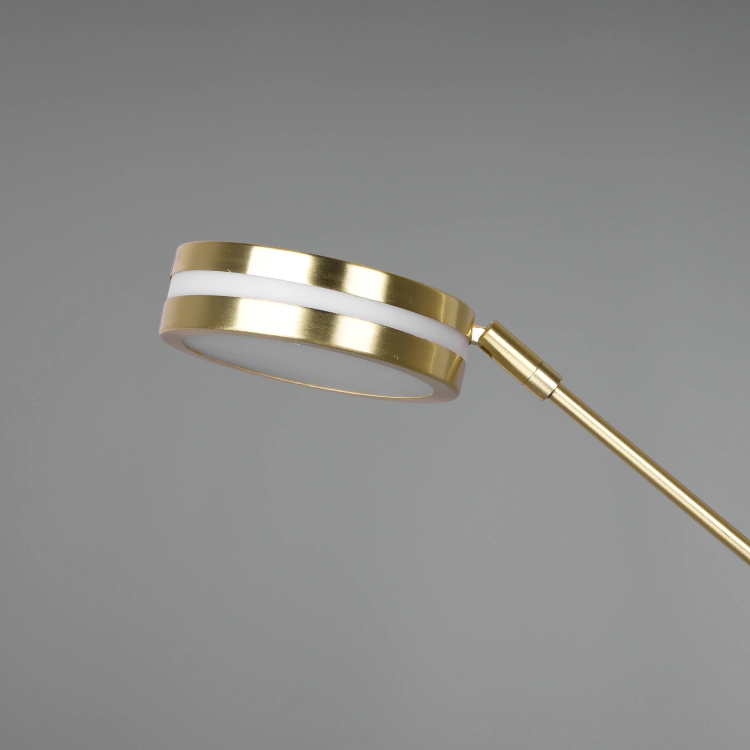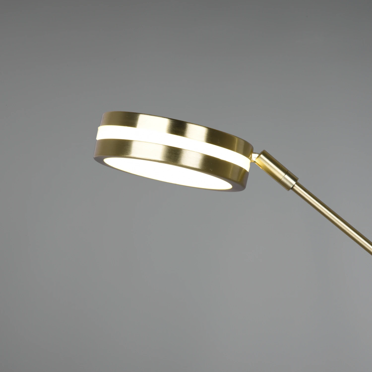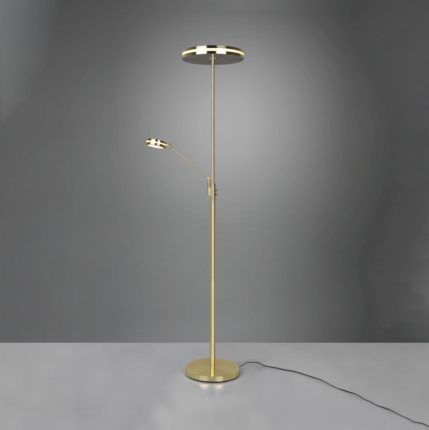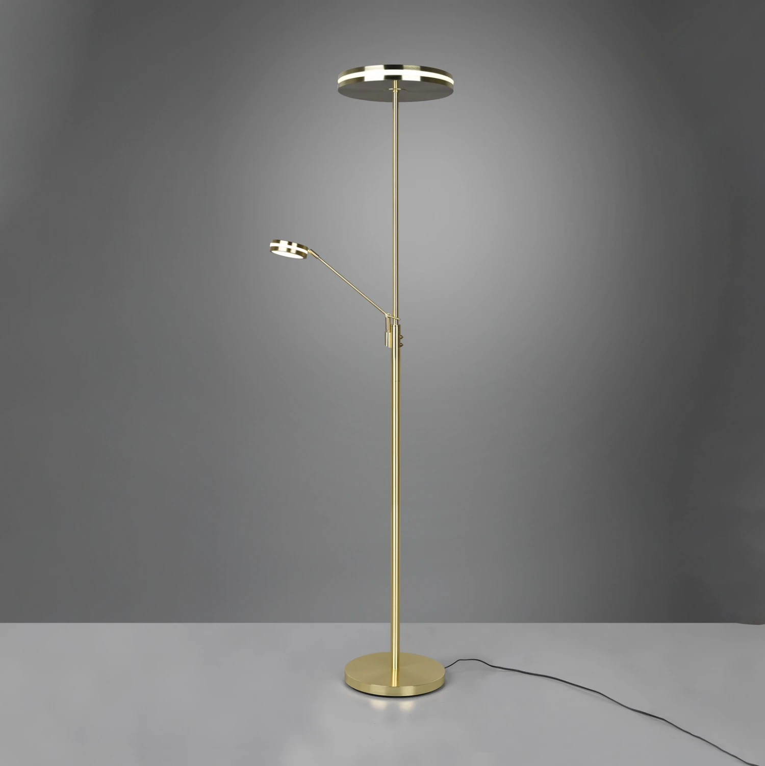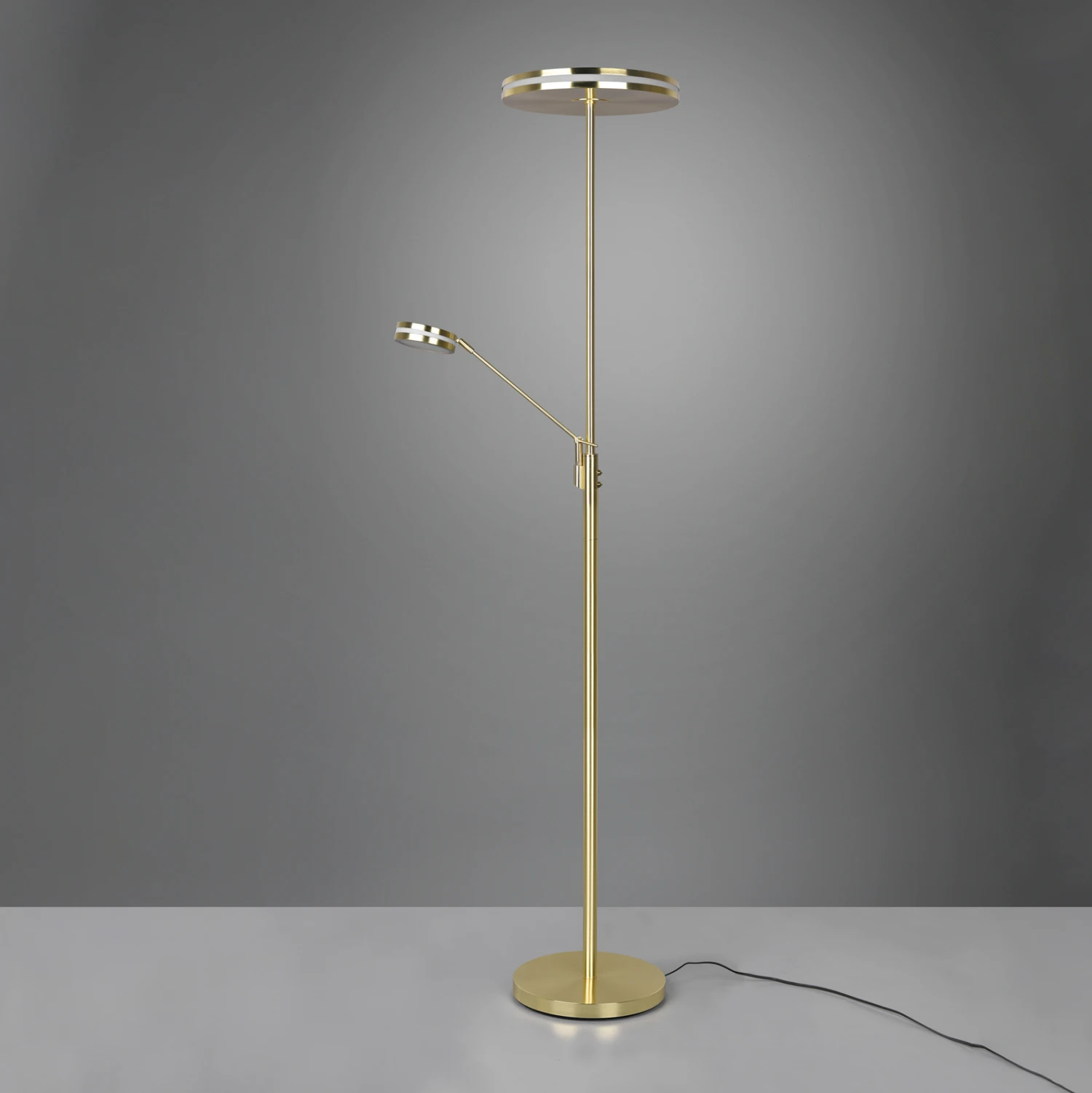 Franklin ist mit einem runden Fluter bestückt, zudem verfügt die Stehleuchte über einen separaten Arm mit LED-Leseleuchte. Die Lichtquellen sind getrennt voneinander schaltbar.