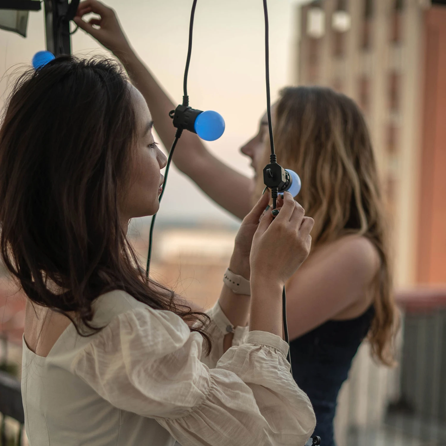 Die Party-Lichterkette Twinkly Festoon ist mit 20 G45-RGB-LEDs ausgestattet. Das bunte Farbschauspiel, welches smart per App oder Smart-Home-System zugeschnitten und bedient werden kann, ergibt eine stimmungsvolle und lebhafte Lichtdekoration.