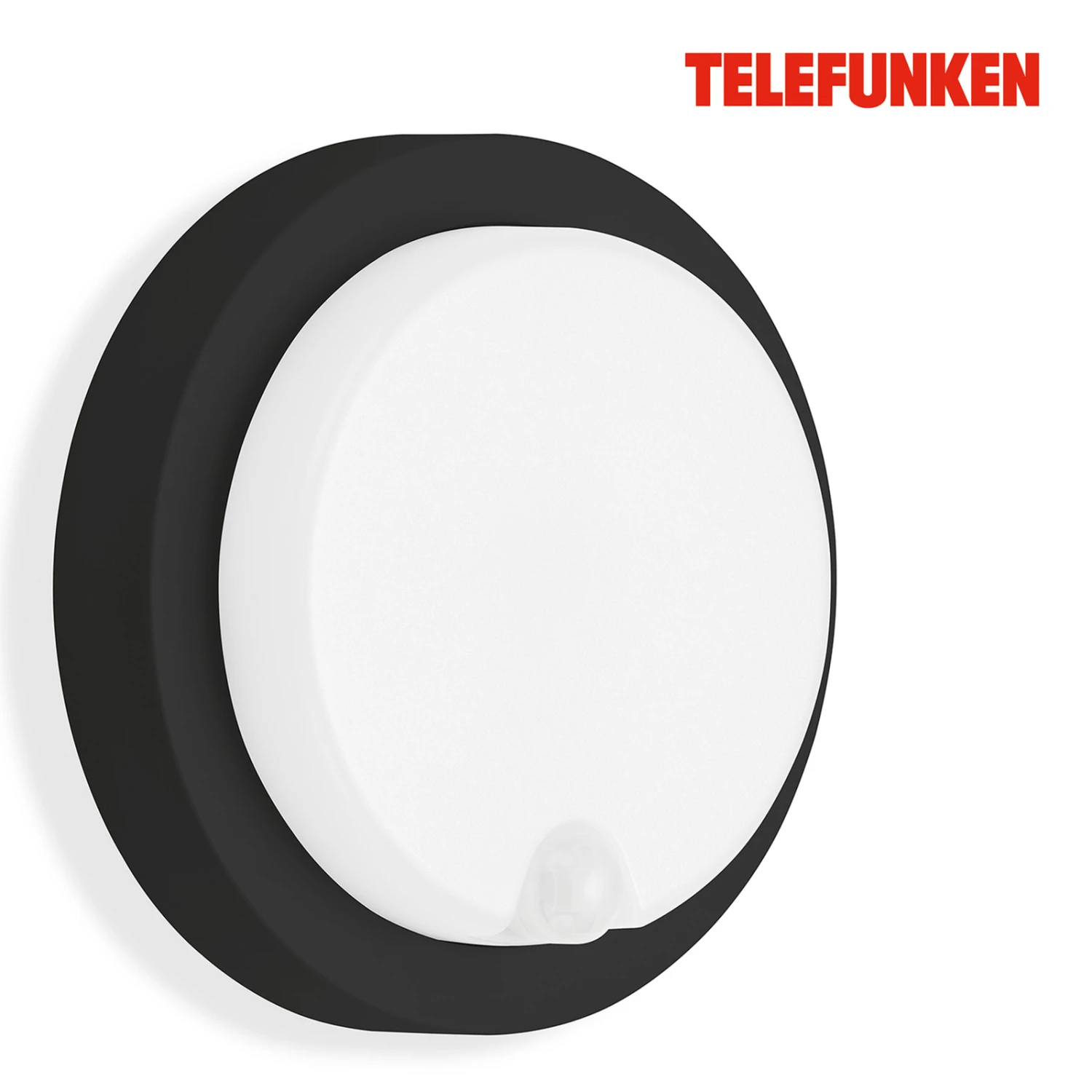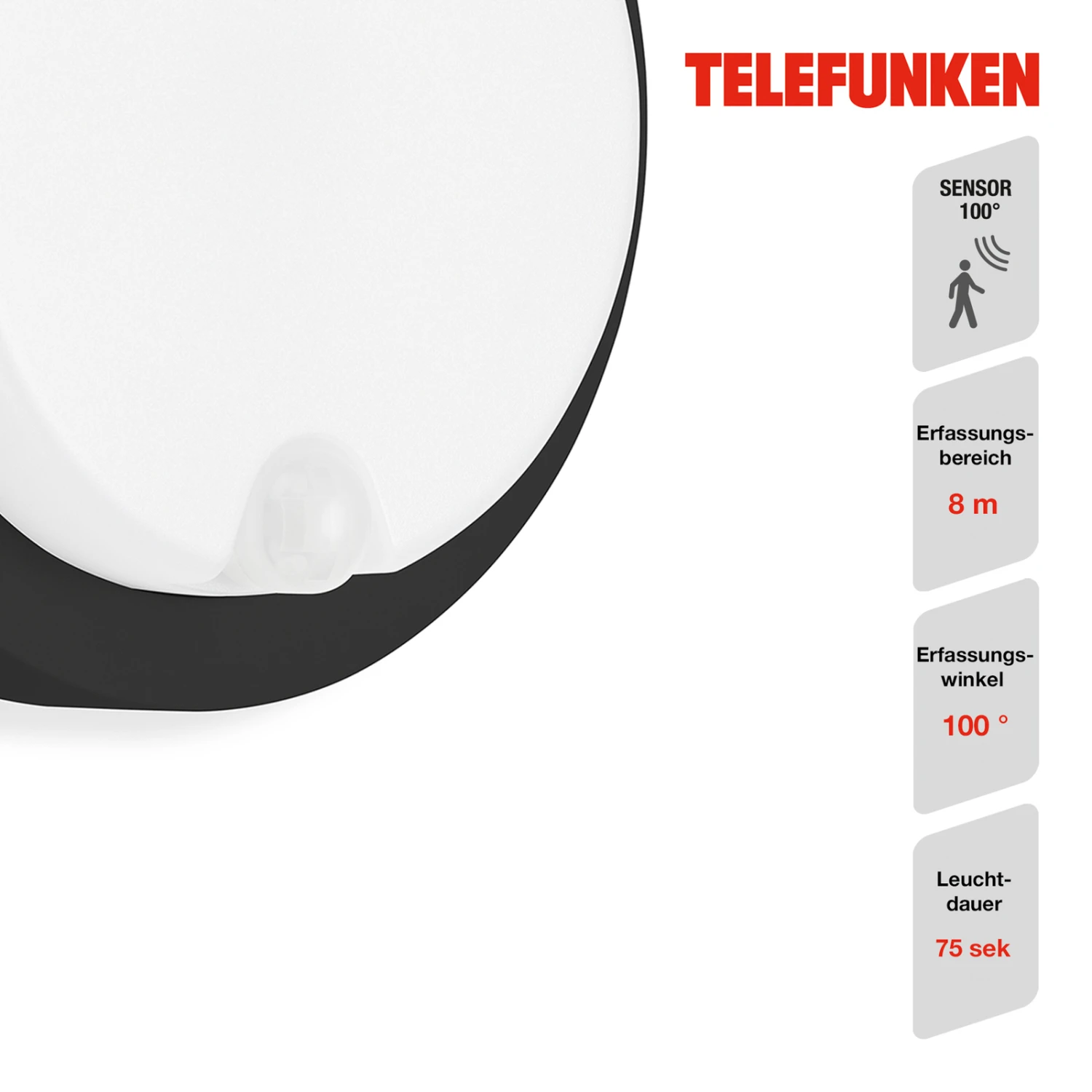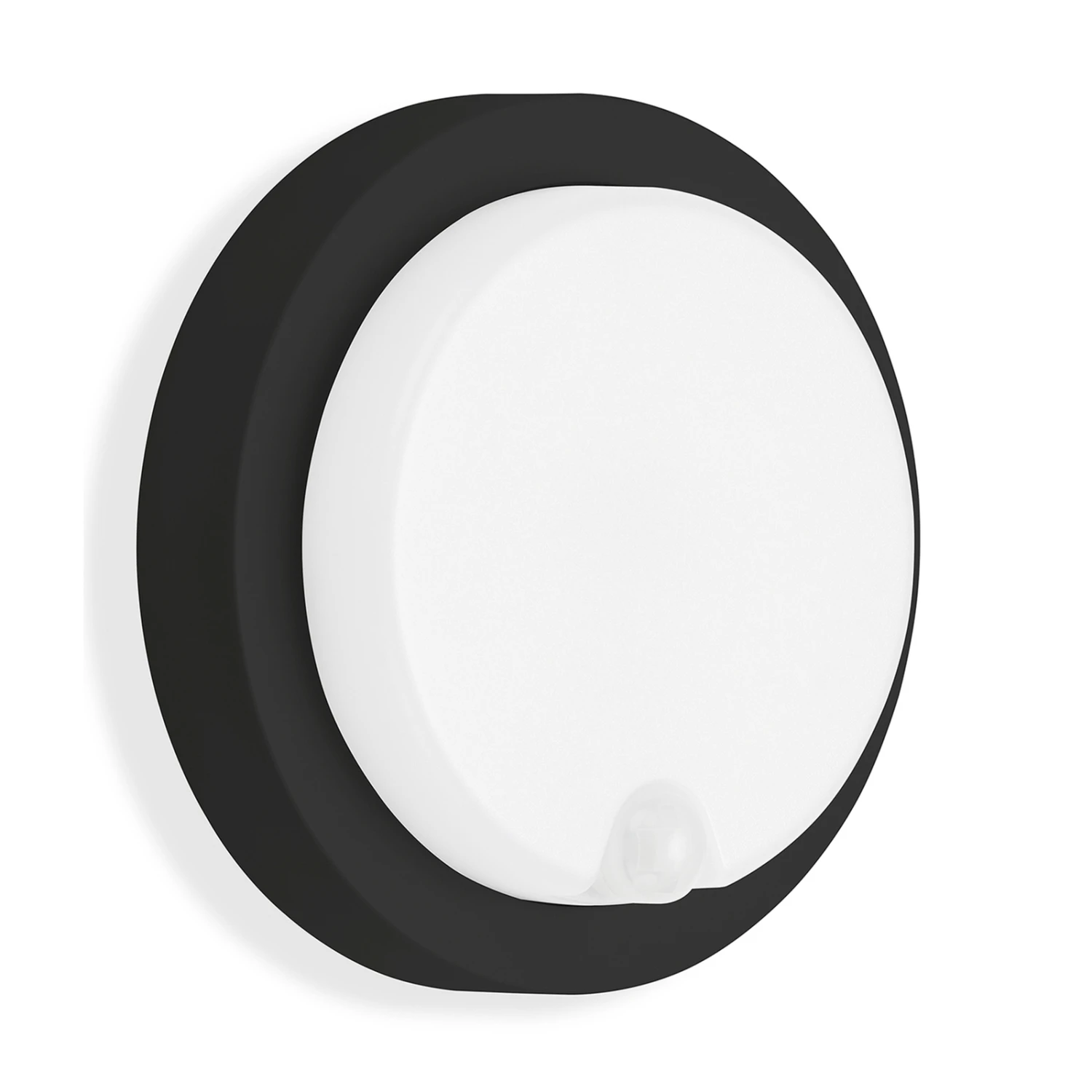 Runde LED-Außenwandlampe Dortmund mit Sensor, neutral gestaltet