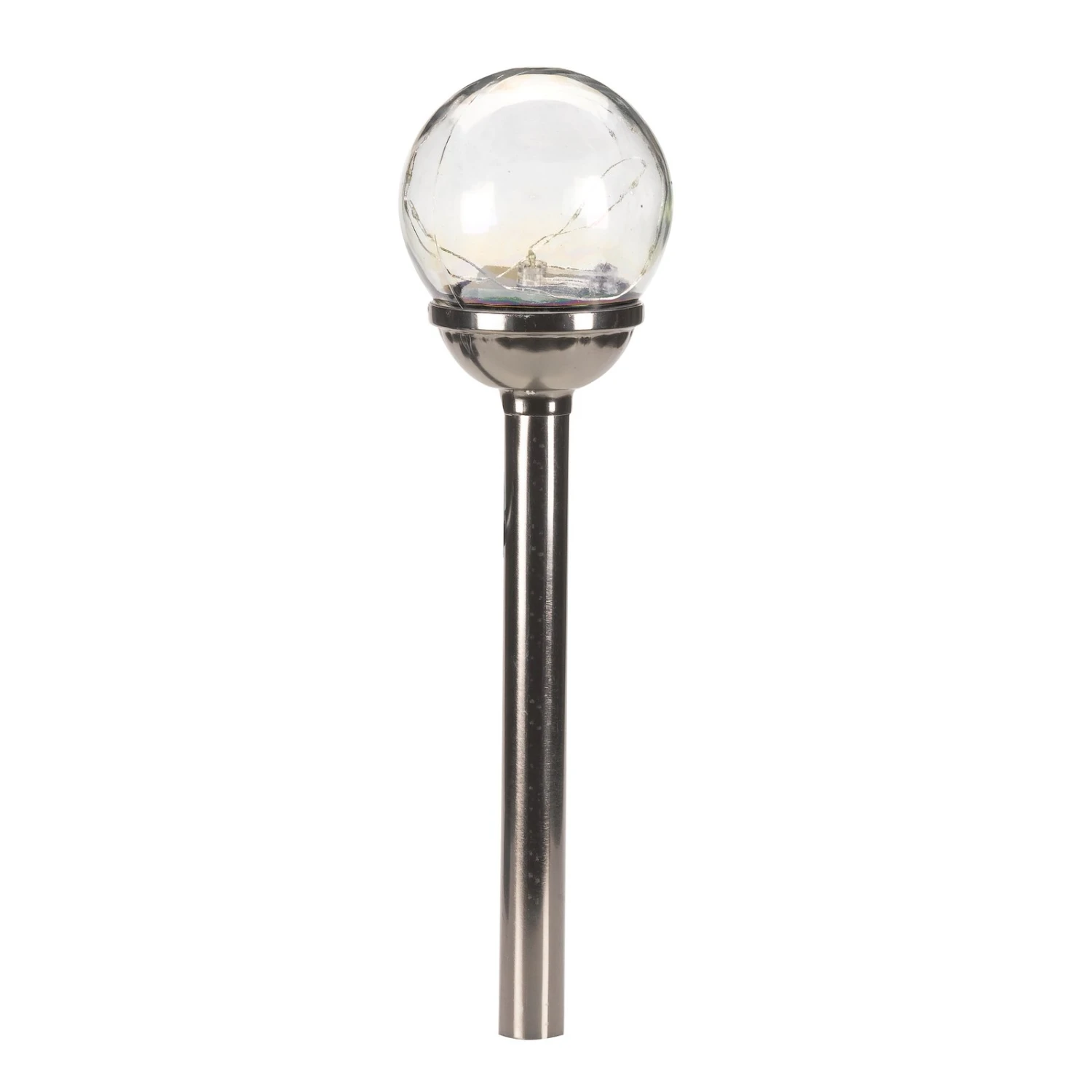 Bei der LED-Solar-Erdspießleuchte Firefly Opal thront auf einem schlichten Edelstahlspieß eine prachtvolle Glaskugel mit irisierendem Nickel-Anteil, die im Inneren mit insgesamt 10 Mikro-LEDs bestückt ist. Diese sorgen in Kombination mit dem Glas für atemberaubende sowie schillernde Lichteffekte. Ob einzeln oder auch zu mehreren in Beeten oder Blumenkästen platziert, lassen sich damit prachtvolle Lichtmomente zaubern.