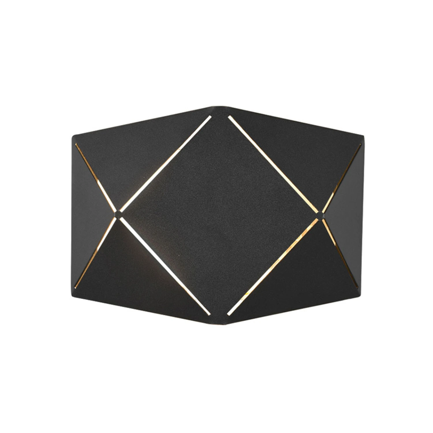 Die Wandlampe wird an einer einfachen Halterung befestigt und nimmt dank ihrer Maße wenig Platz ein. Über der LED liegt ein retrofuturistisch gestalteter Lampenschirm in Schwarz, der das Licht nach oben und unten hin an die Wand strahlt. Somit ist die Leuchte die ideale Ergänzung für zahlreiche Beleuchtungskonzepte.