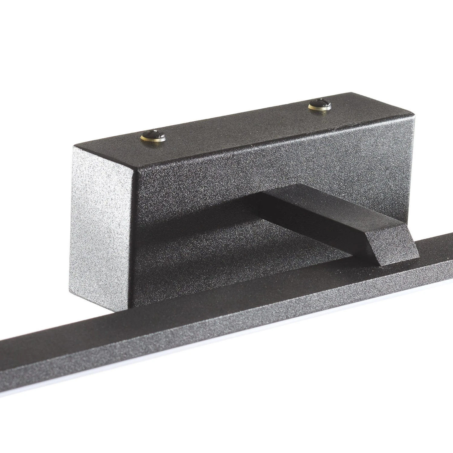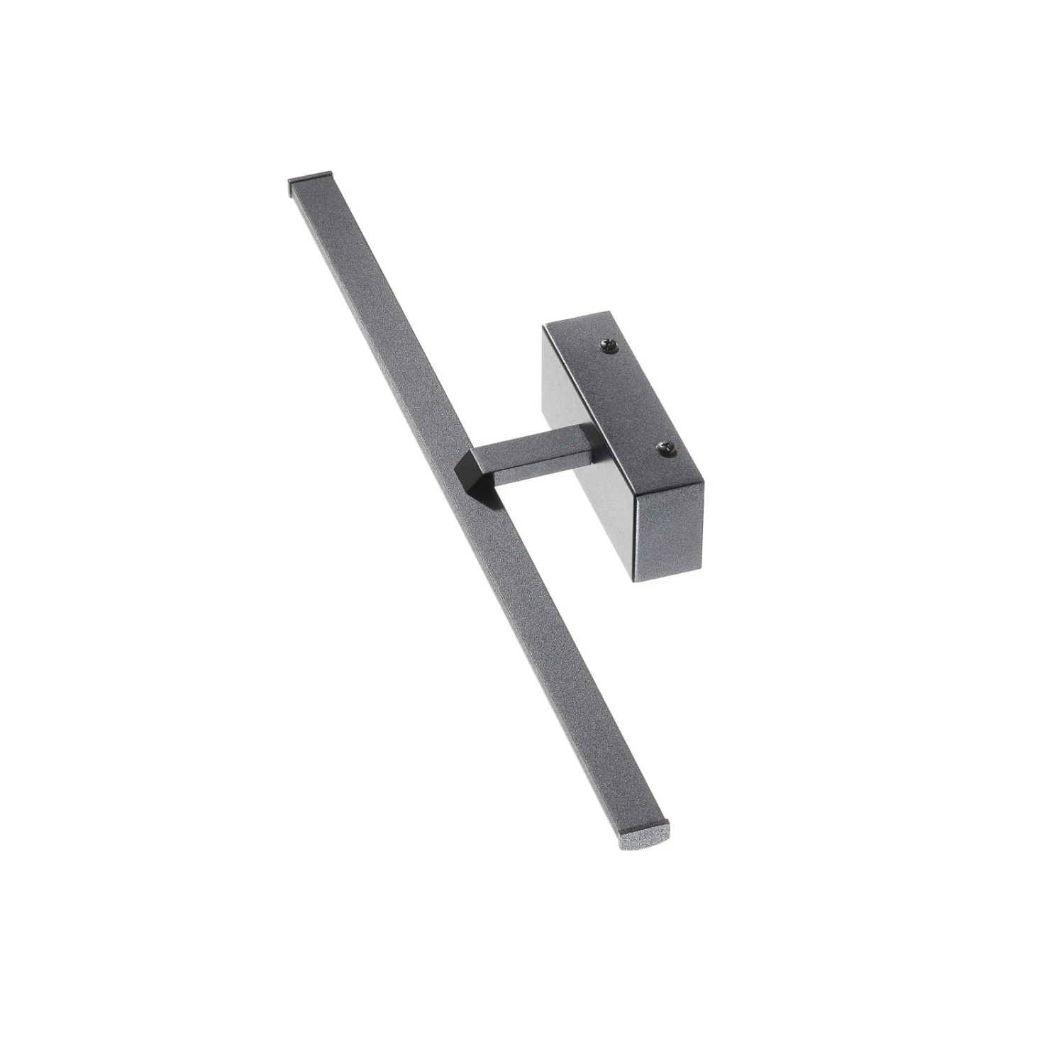 Die LED-Wandleuchte Nala ist klar und modern gestaltet. Ein rechteckiger Wandhalter trägt über einen Arm eine Leiste, deren Unterseite mit einem matten Diffusor aus Methacrylat besetzt ist. Die spritzwassergeschützt im Innern gelegenen LEDs erhellen die gesamte Breite der Leuchte, sodass unterhalb platzierte Gemälde, Spiegel, Waschbecken oder Arbeitsbereiche effektiv mit warmweißem Licht versorgt werden. Ebenso bietet sich Nala zur eleganten Zusazbeleuchtung im Flur an.