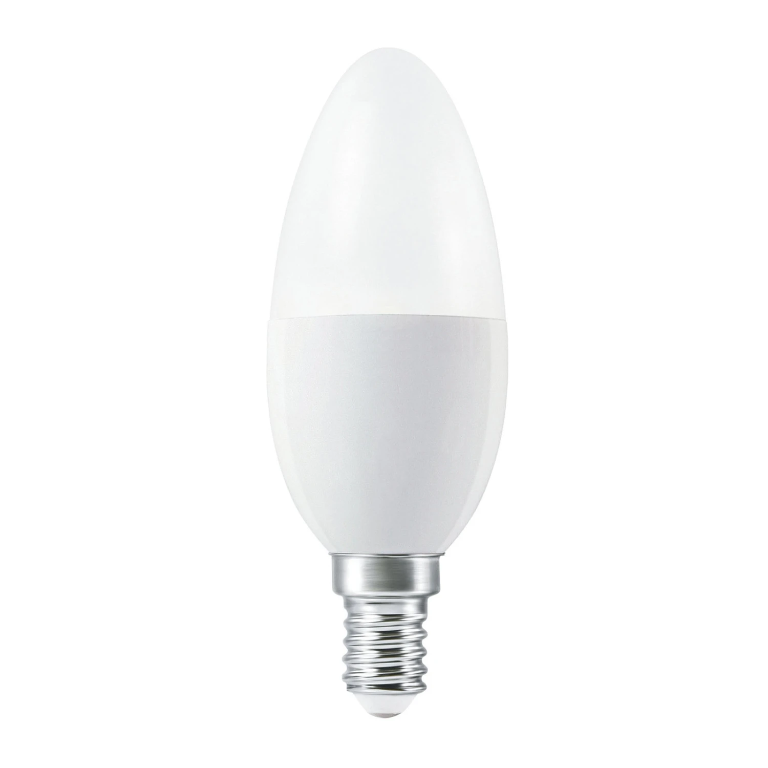 Diese via App oder Sprachbefehl schalt- und dimmbare E14 LED-Kerze zur warmweißen Beleuchtung wird im praktischen 3er-Pack geliefert. Die smarte Steuerung ist hier ohne Gateway oder Bridge möglich; dank der SMART+ WiFi-Technologie erfolgt die Kommunikation über das WLAN.
