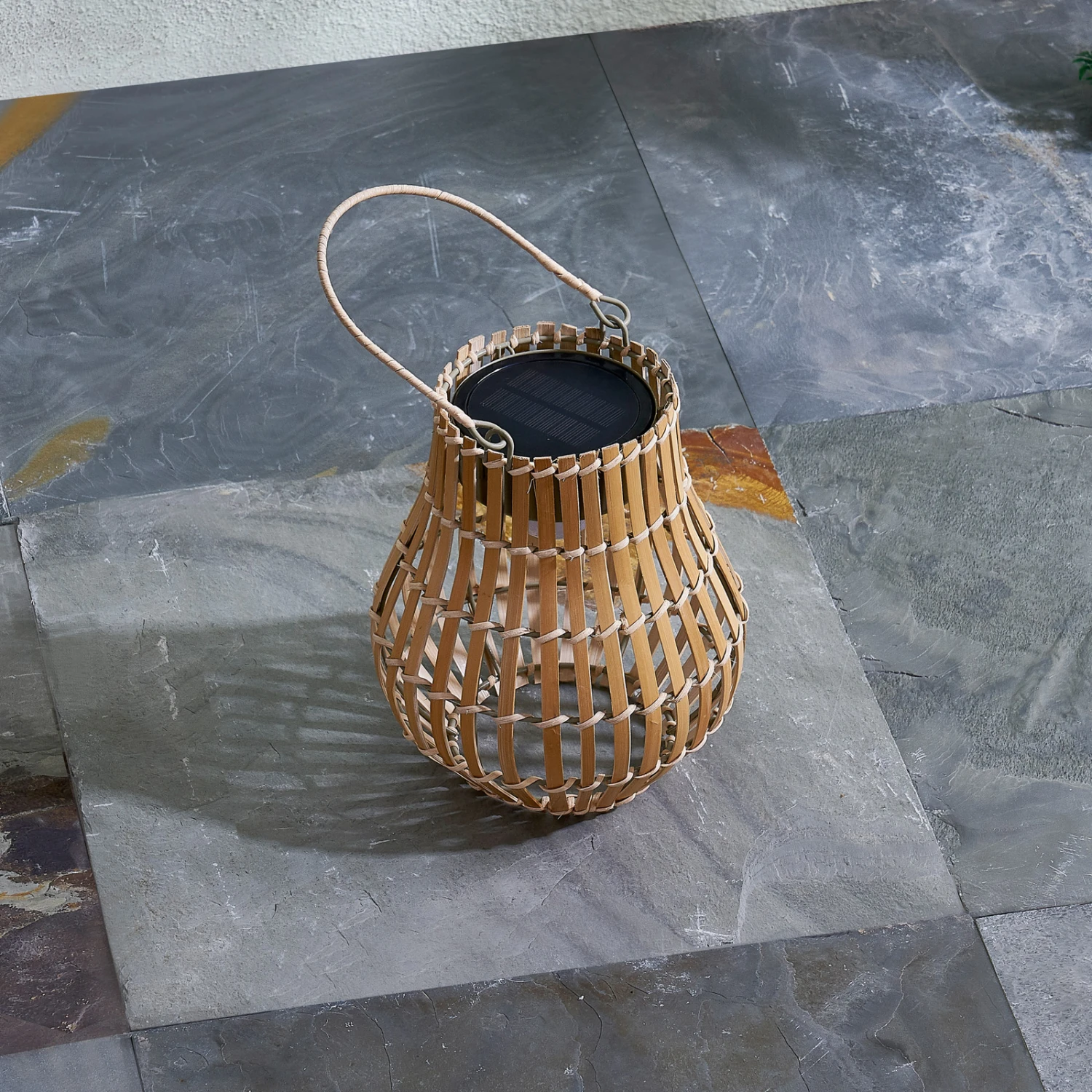 Aus Rattan hergestellte LED-Solar-Terrassenleuchte Amaria mit Dimmfunktion
