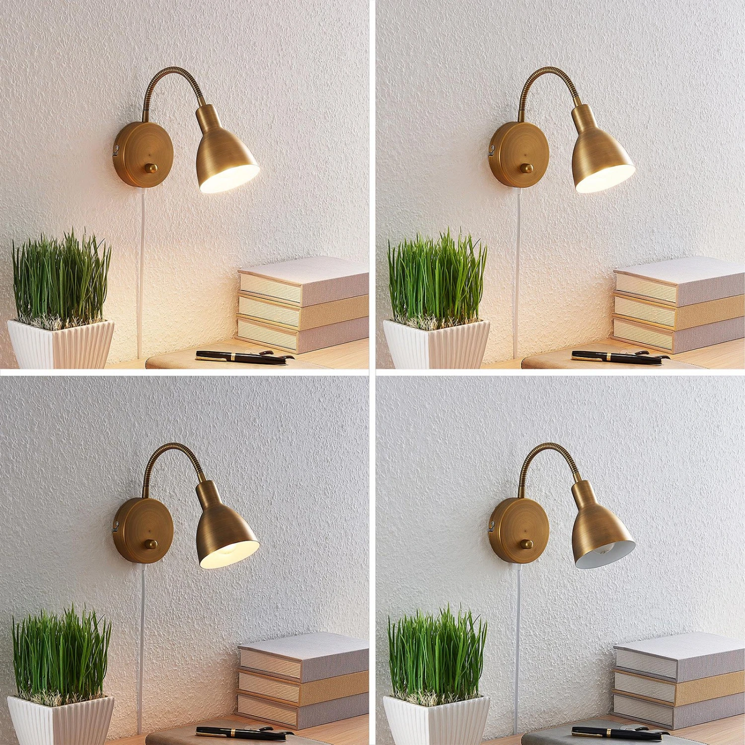 Altmessingfarbene Wandlampe Amrei aus Metall mit integriertem Dimmer