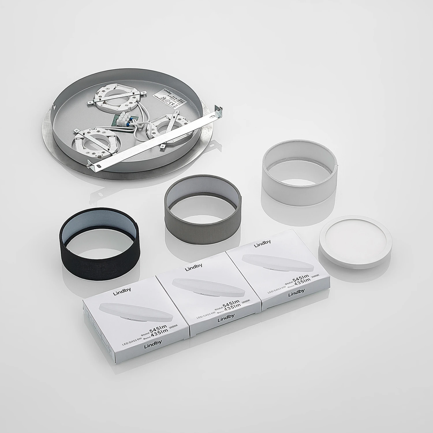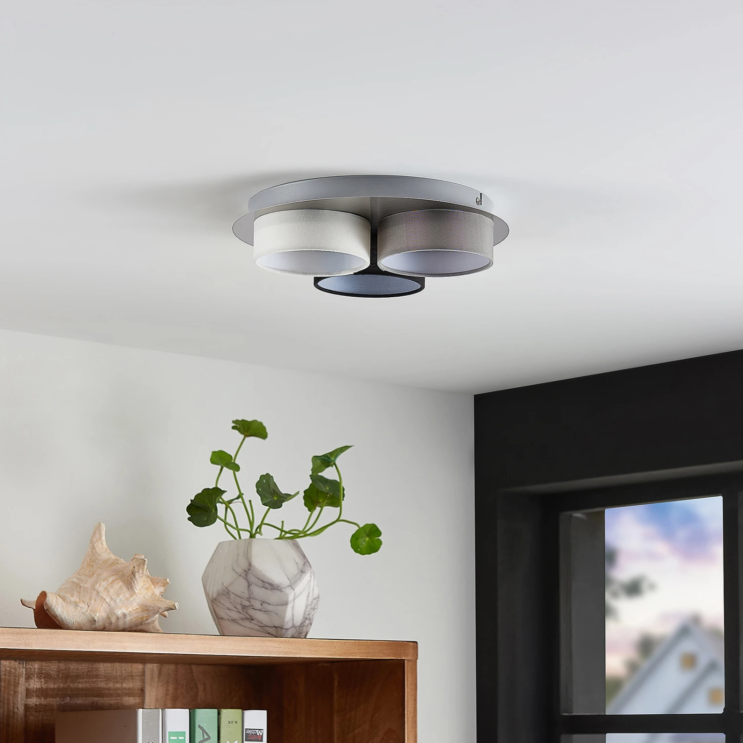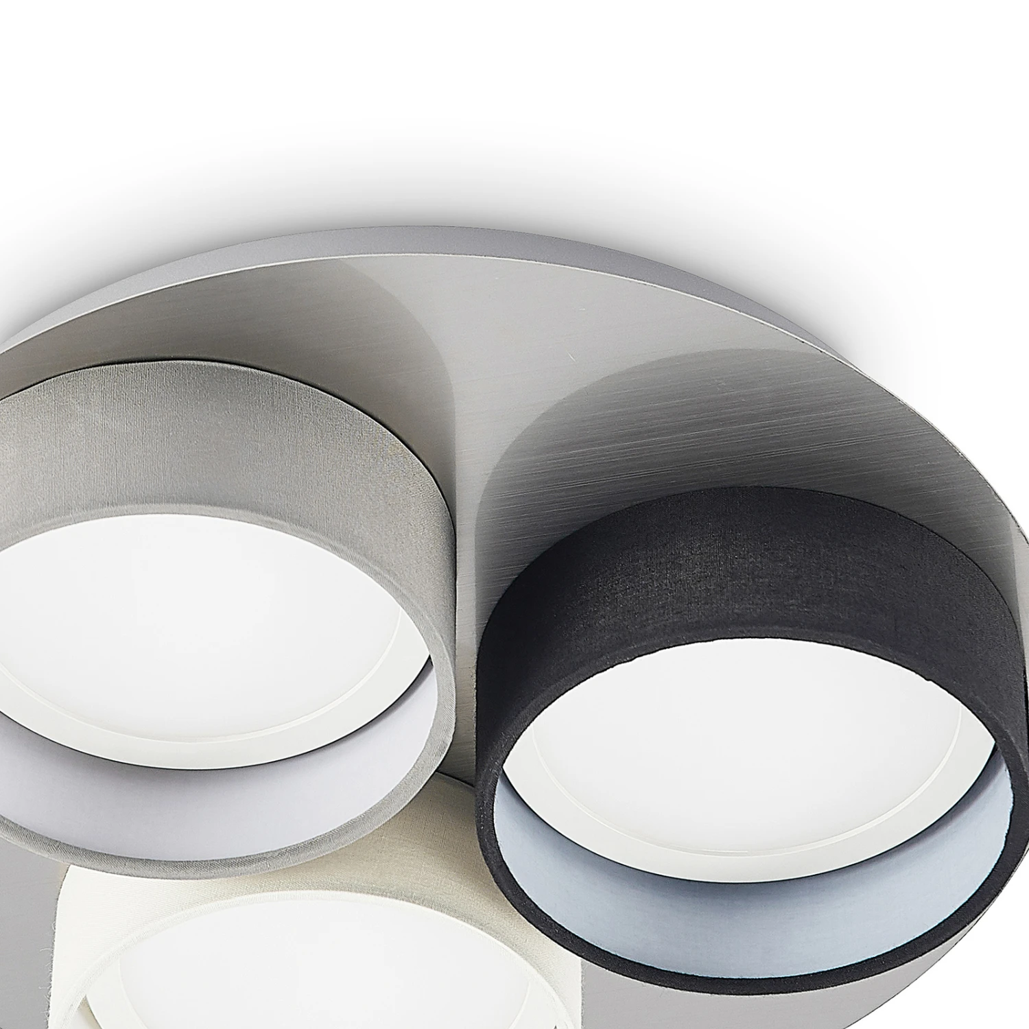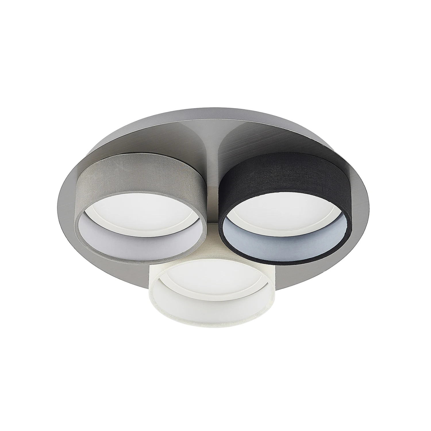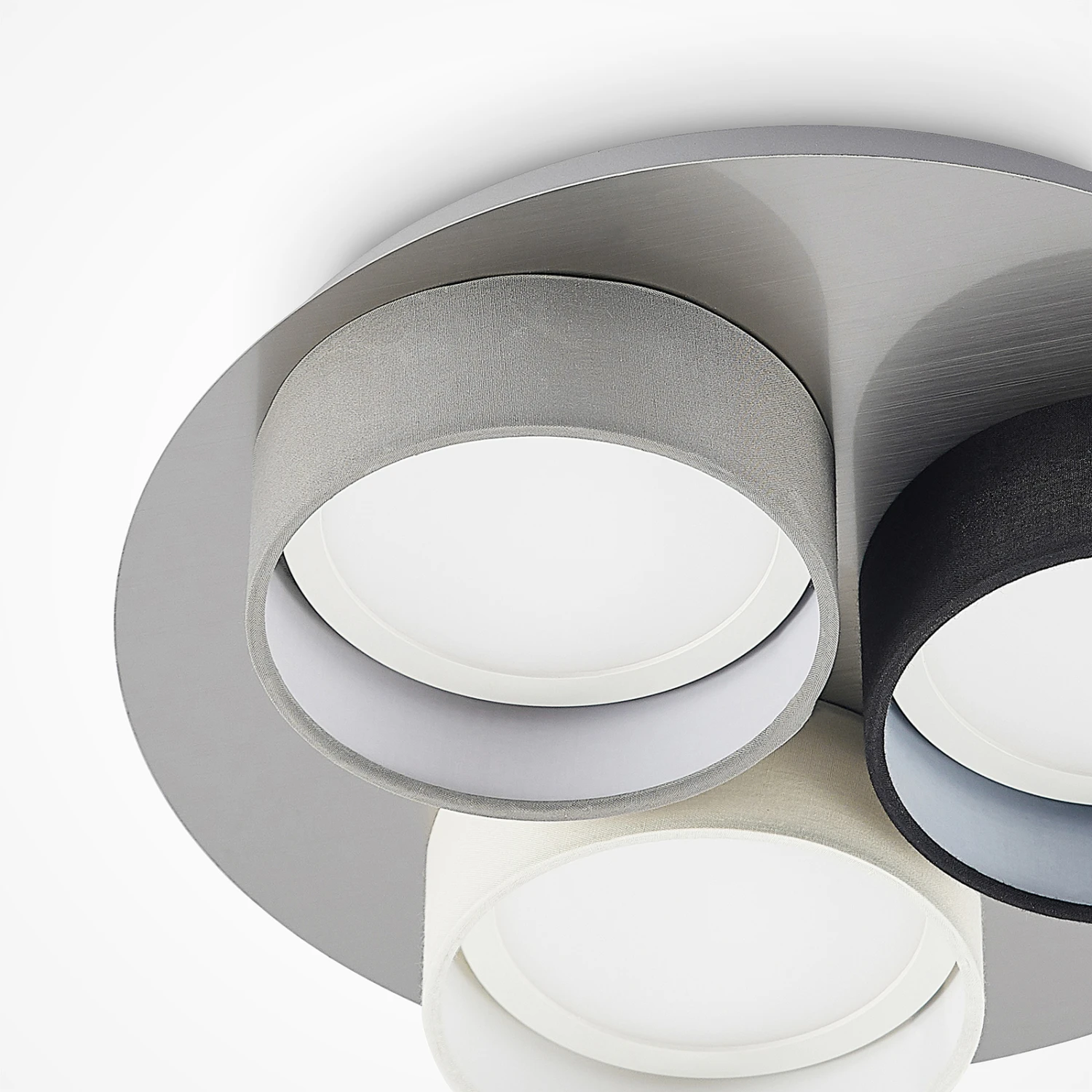Runde LED-Deckenleuchte Aviola aus Metall mit drei kleinen Textilschirmen