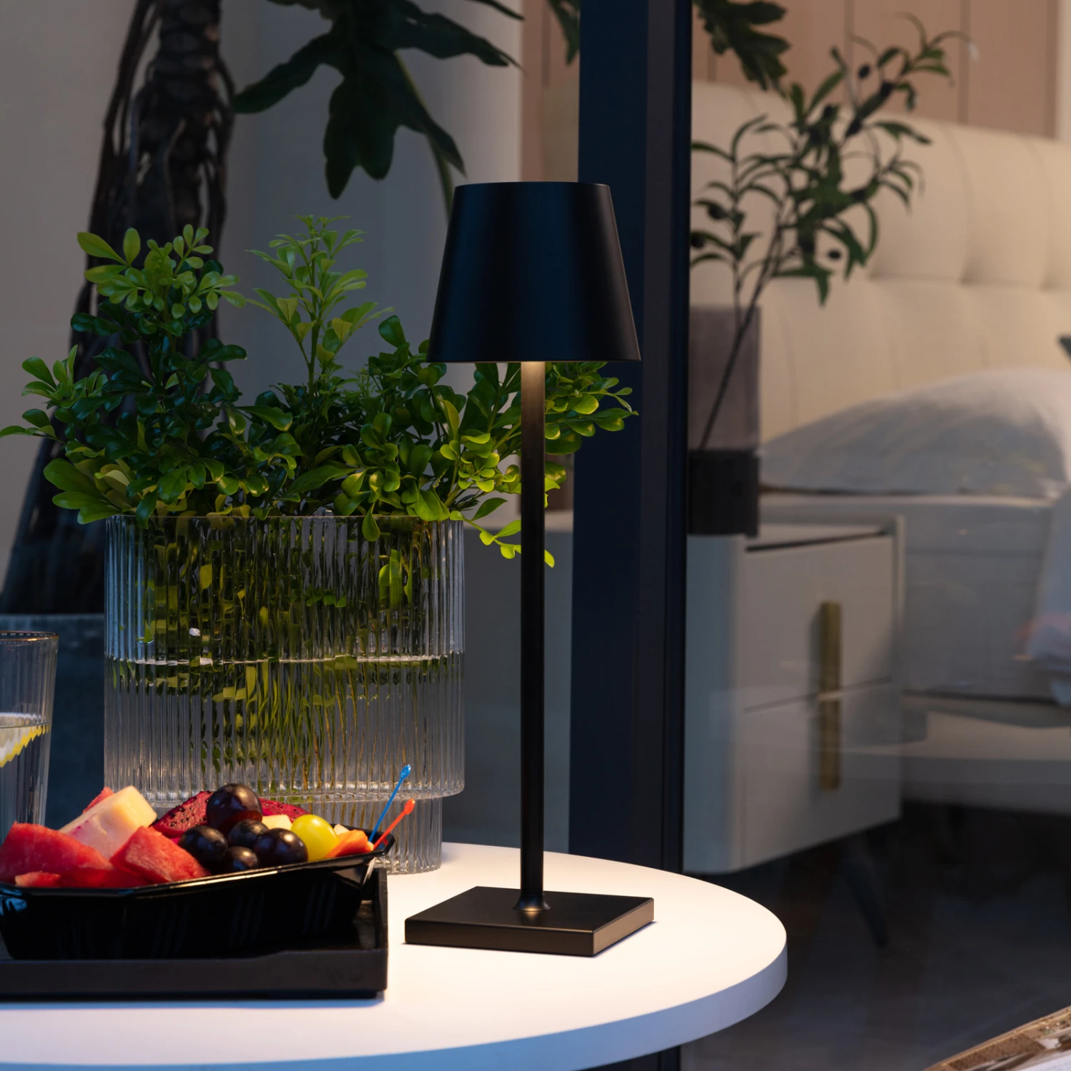 Schwarze LED-Tischleuchte Janea mit Akku in schwarzer Optik