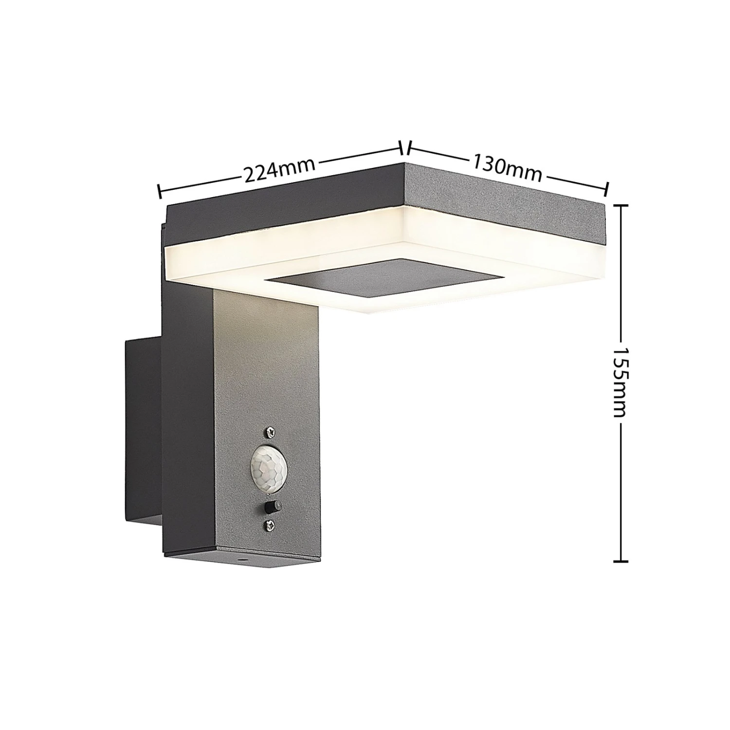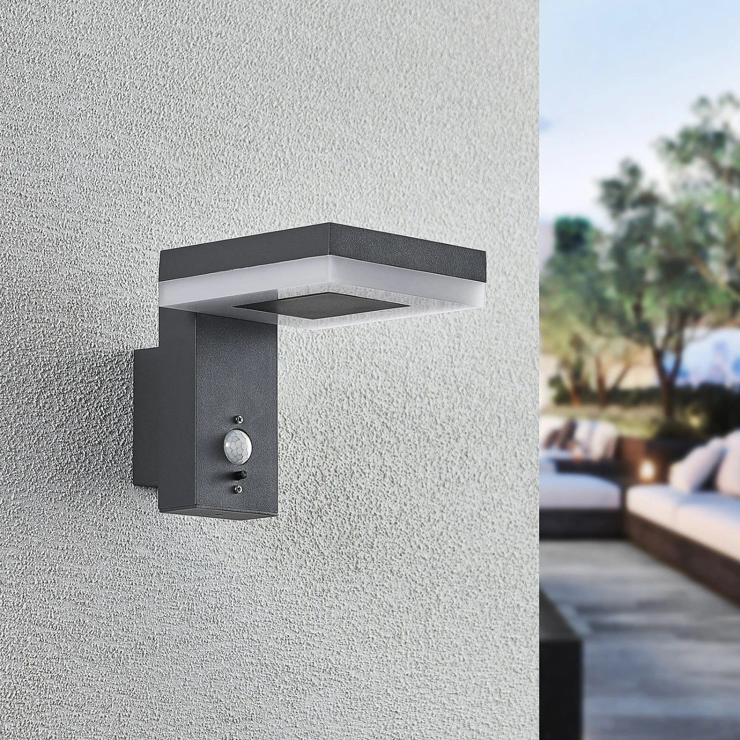 Kompakte LED-Solarwandleuchte Laira aus Aluminium mit Bewegungssensor in Anthrazit
