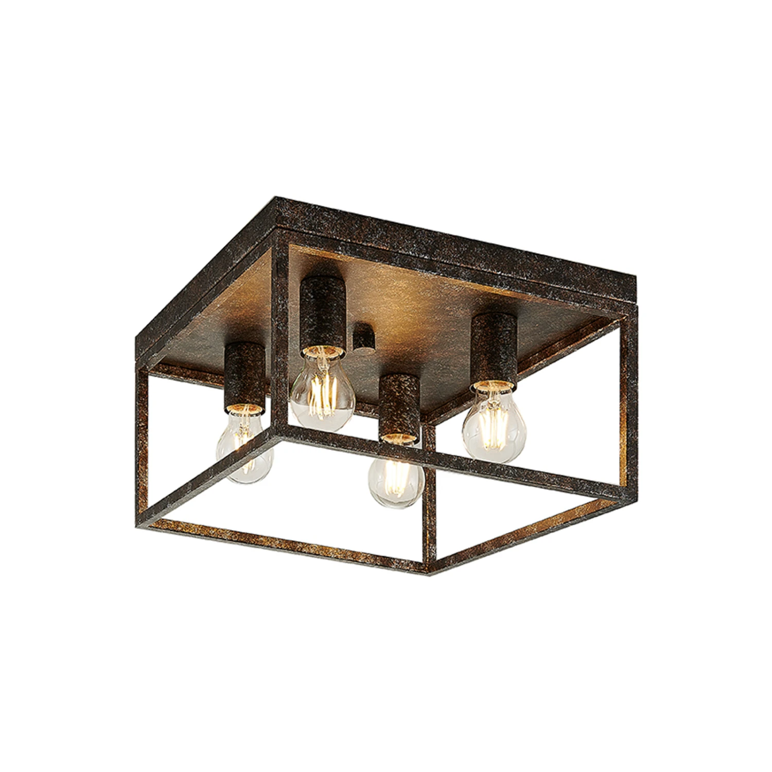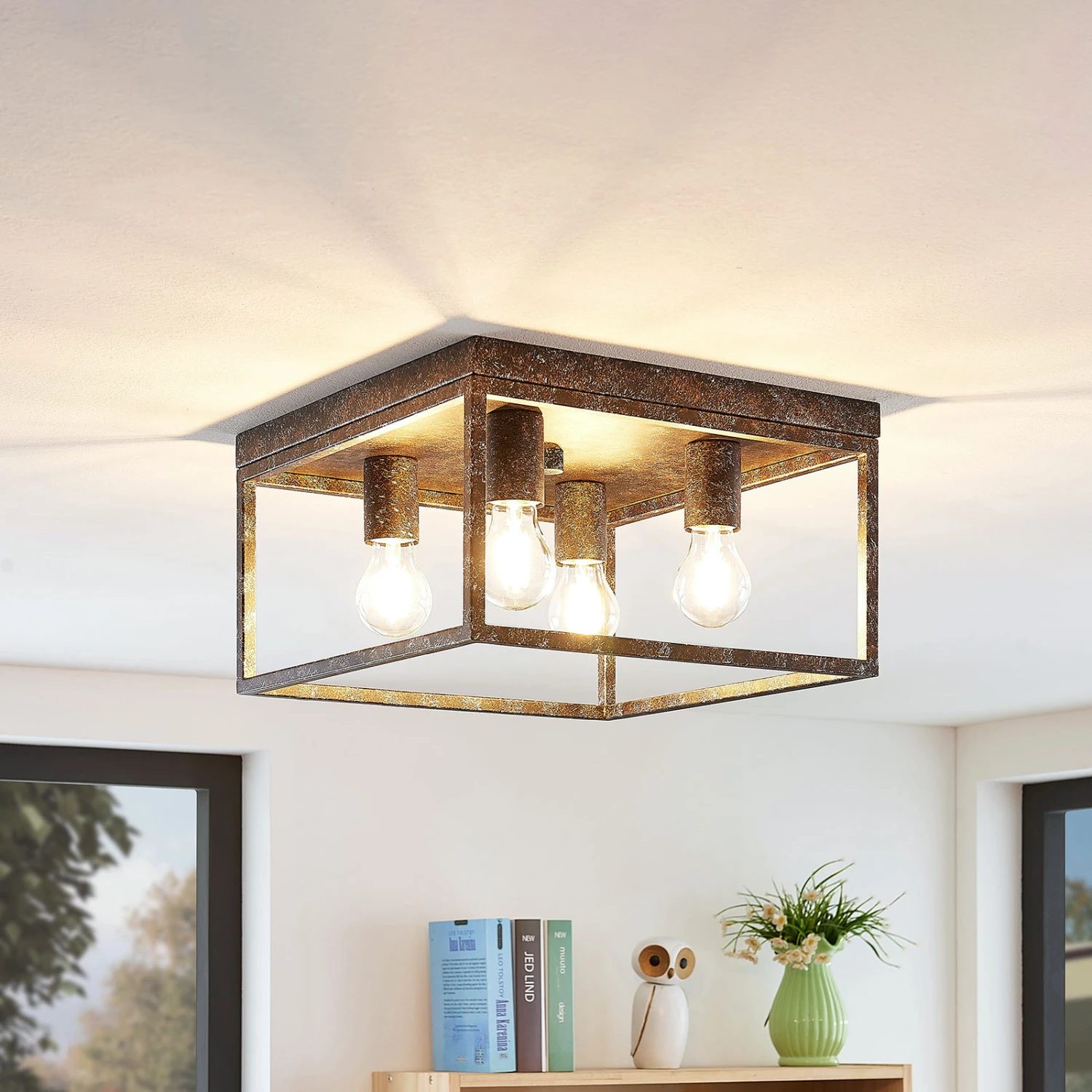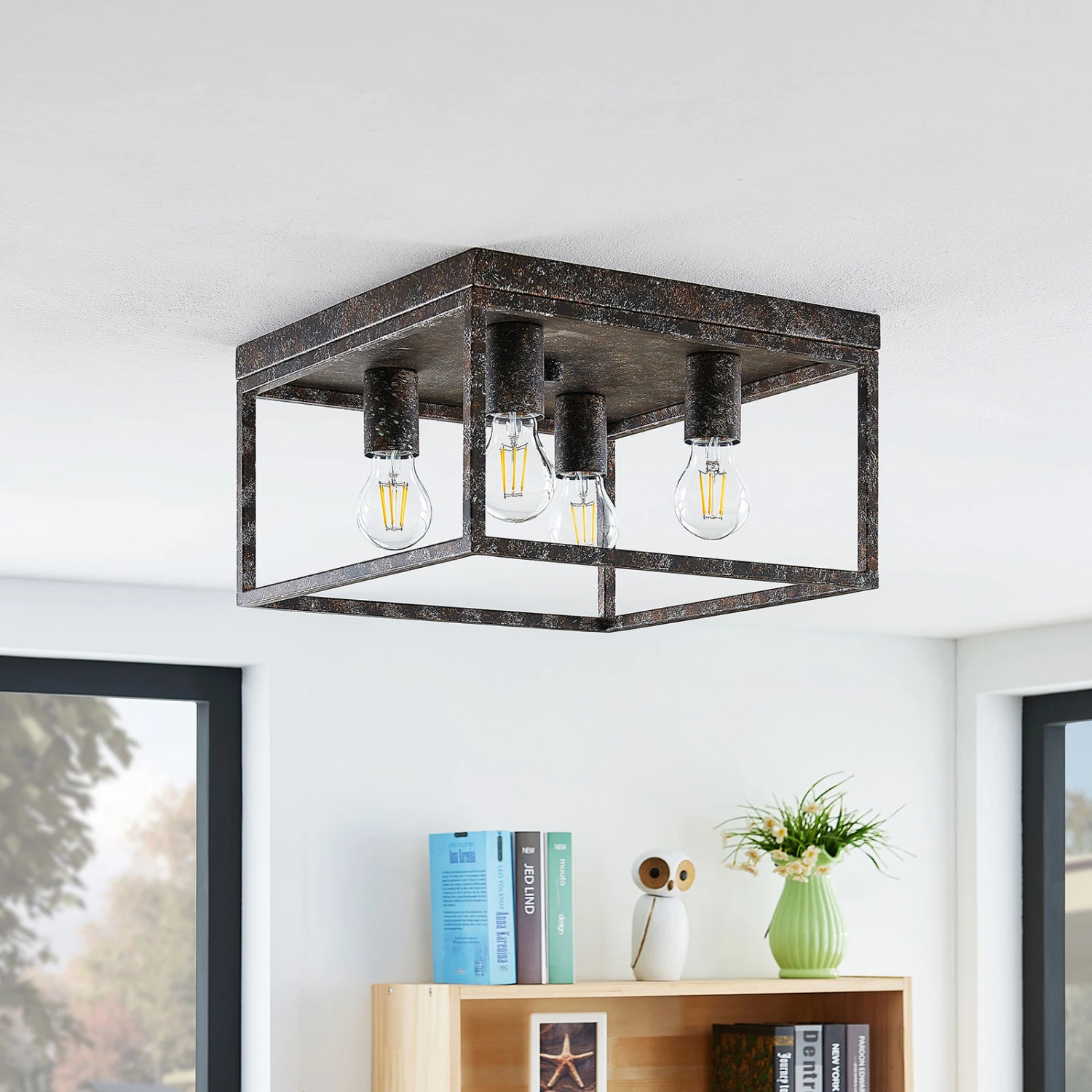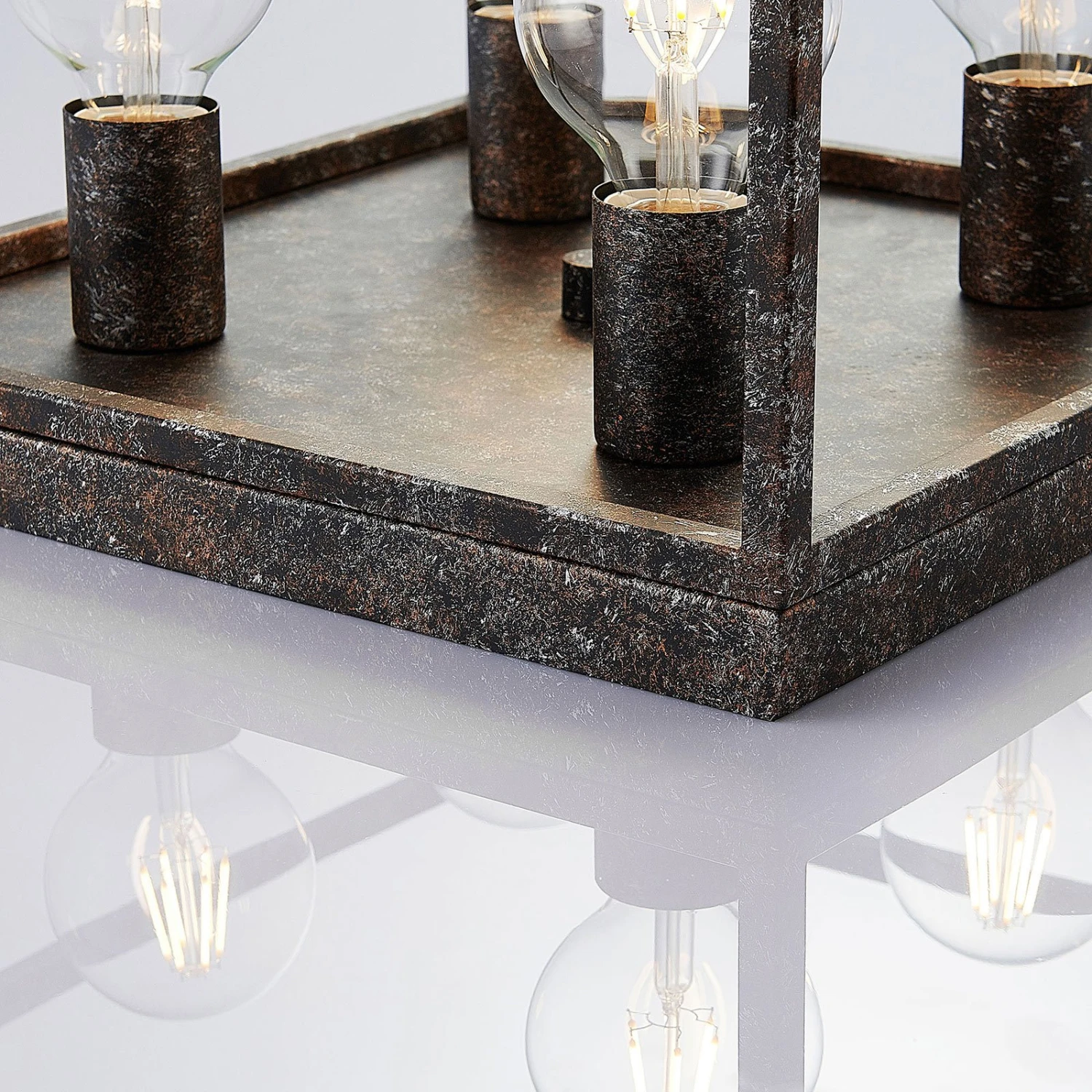 Kastenförmige Metalldeckenlampe Lejus in vierflammiger Ausführung, rostfarbenes Finish