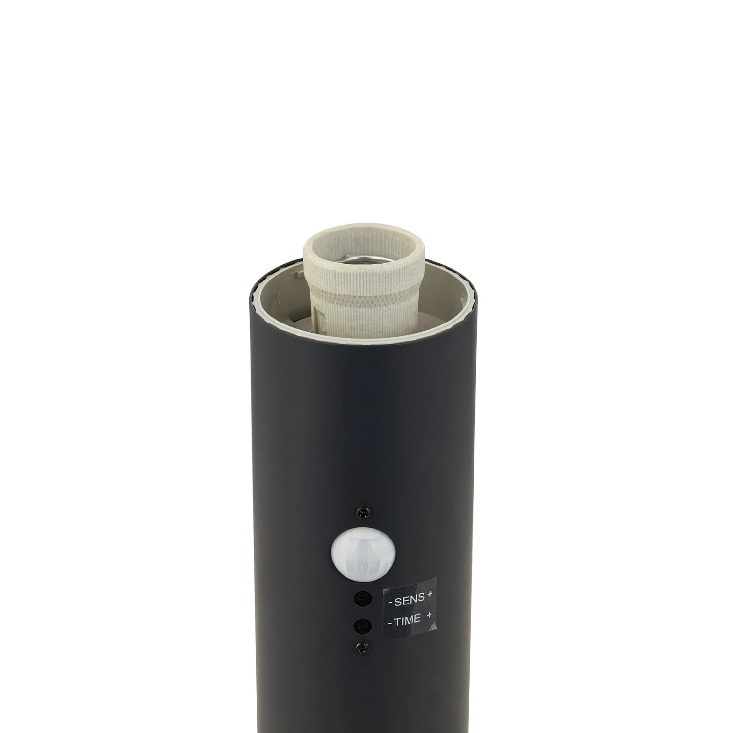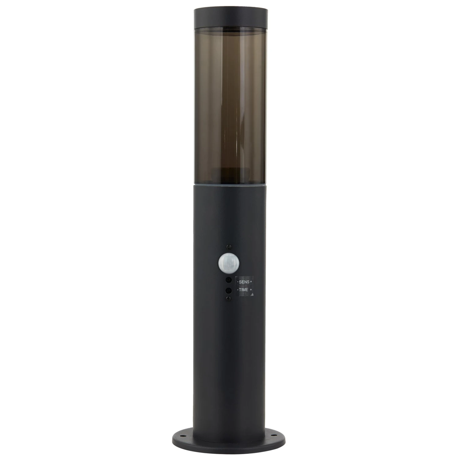 Schwarze Sockelleuchte Statius für den Außenbereich mit praktischem Bewegungssensor