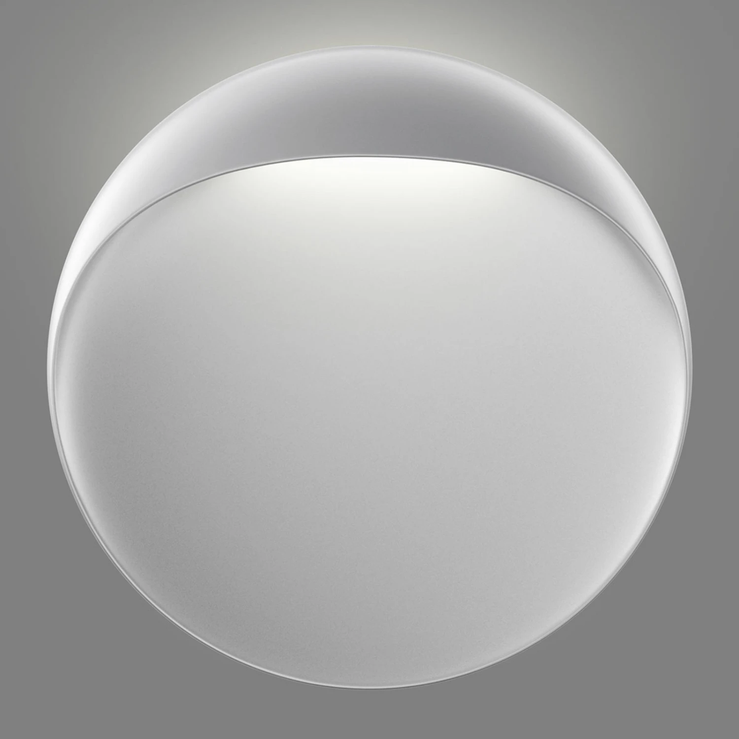 Die LED-Wandleuchte Flindt vervollständigt die Produktreihe des dänischen Designers Christian Flindt, die er für den Leuchtenhersteller Louis Poulsen schuf. Ihr schlichtes, elegantes Design fügt sich bei Tag und in der Dunkelheit optimal in die Umgebung ein. Flindt beschreibt einen perfekten Kreis und ist mit einem konkaven Lichtaustritt an der Oberseite versehen, wodurch am Übergang zwischen konkaven und konvexen Formen ein sanft leuchtender Ring aus reflektiertem Licht entsteht, das von zwei LED-Leuchtmitteln erzeugt wird. Teils strahlt das Licht direkt ab, teils wird es nach oben und nach hinten verteilt, wodurch ein halbmondförmiger, indirekter Lichtanteil entsteht.