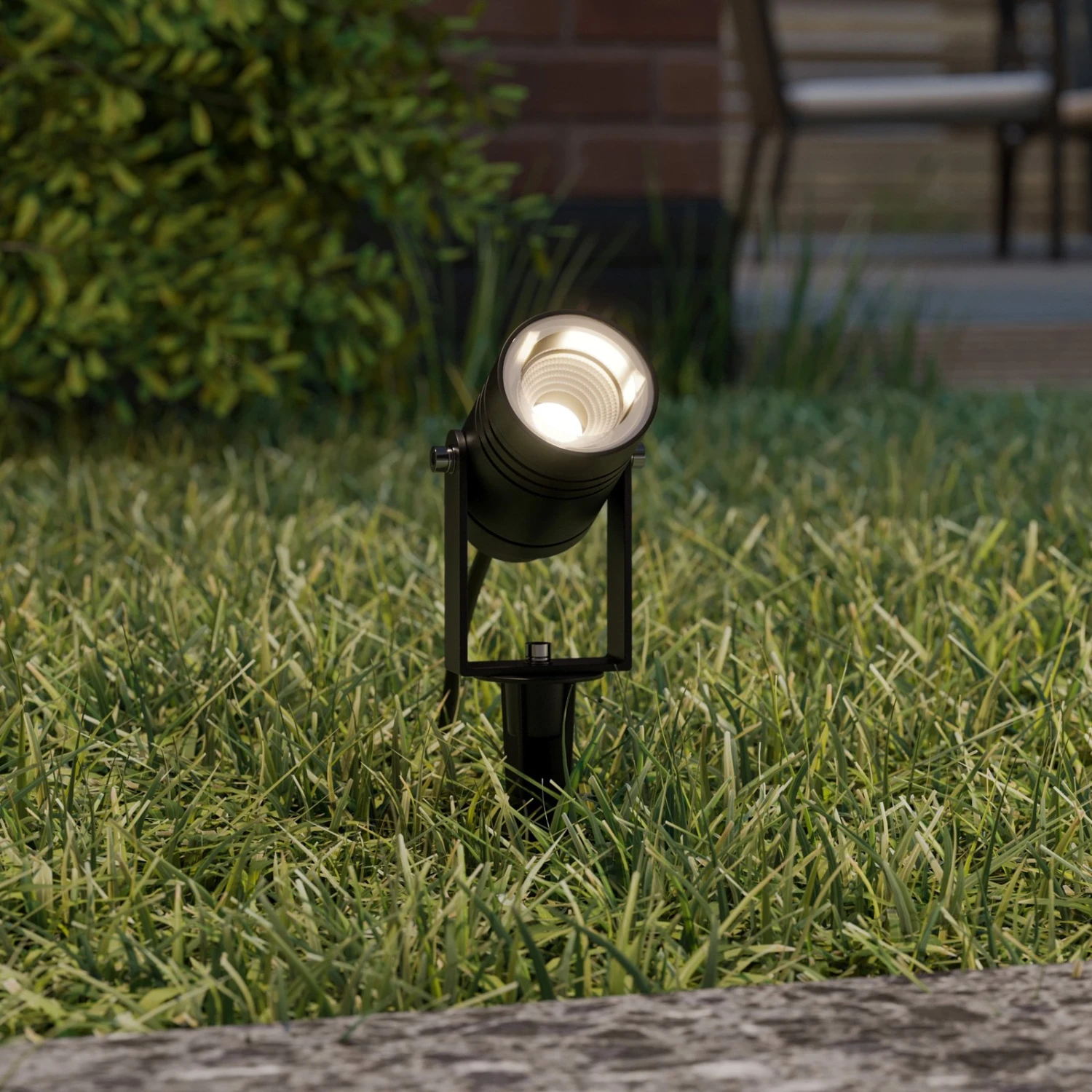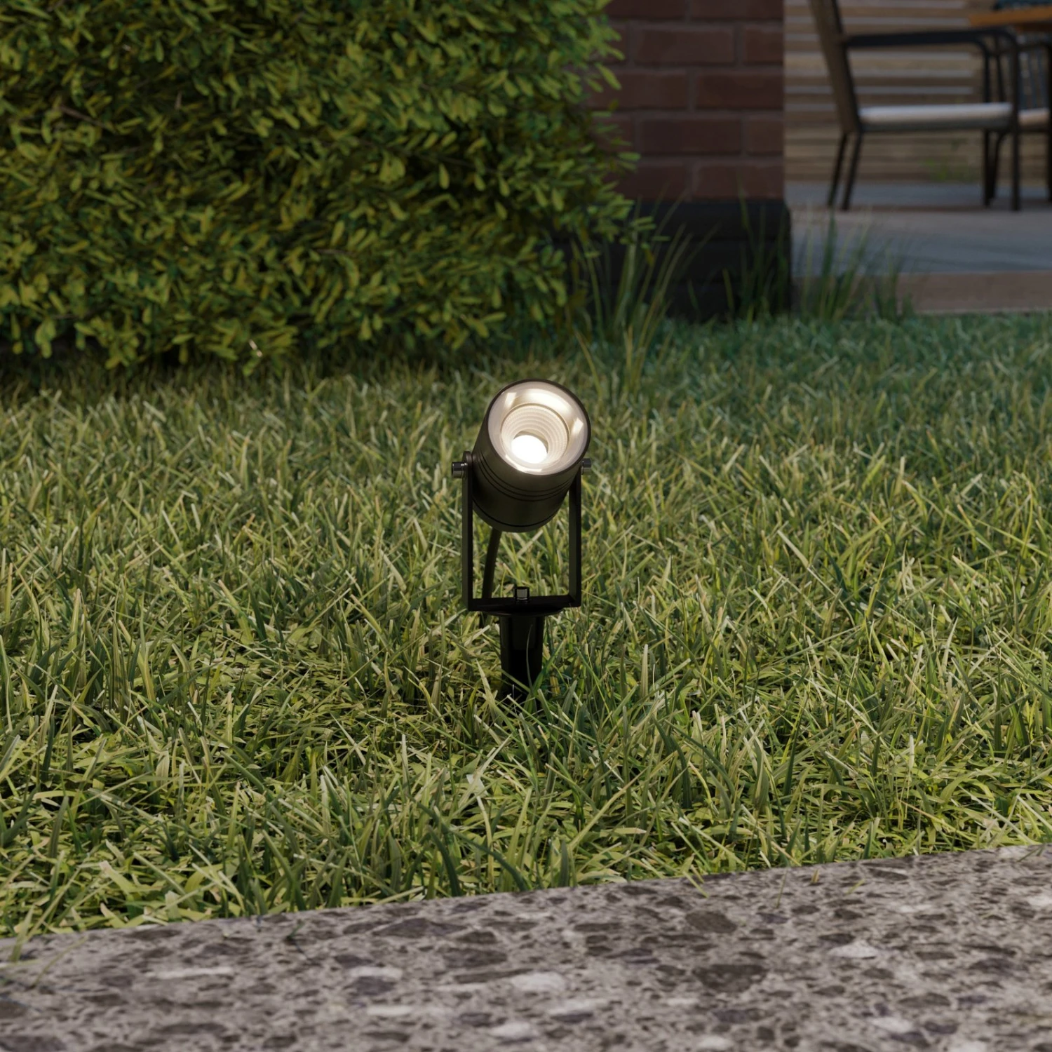 Dunkelgrauer Außenstrahler Galina mit Erdspieß und schwenkbarem Leuchtkopf