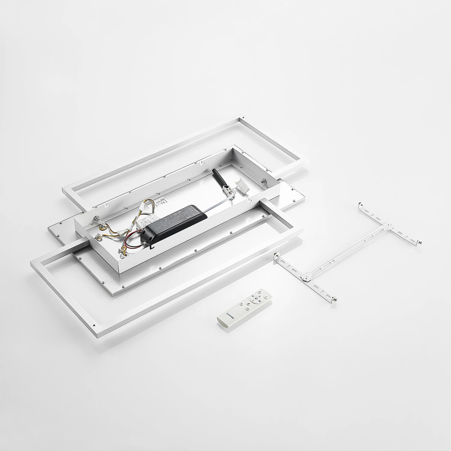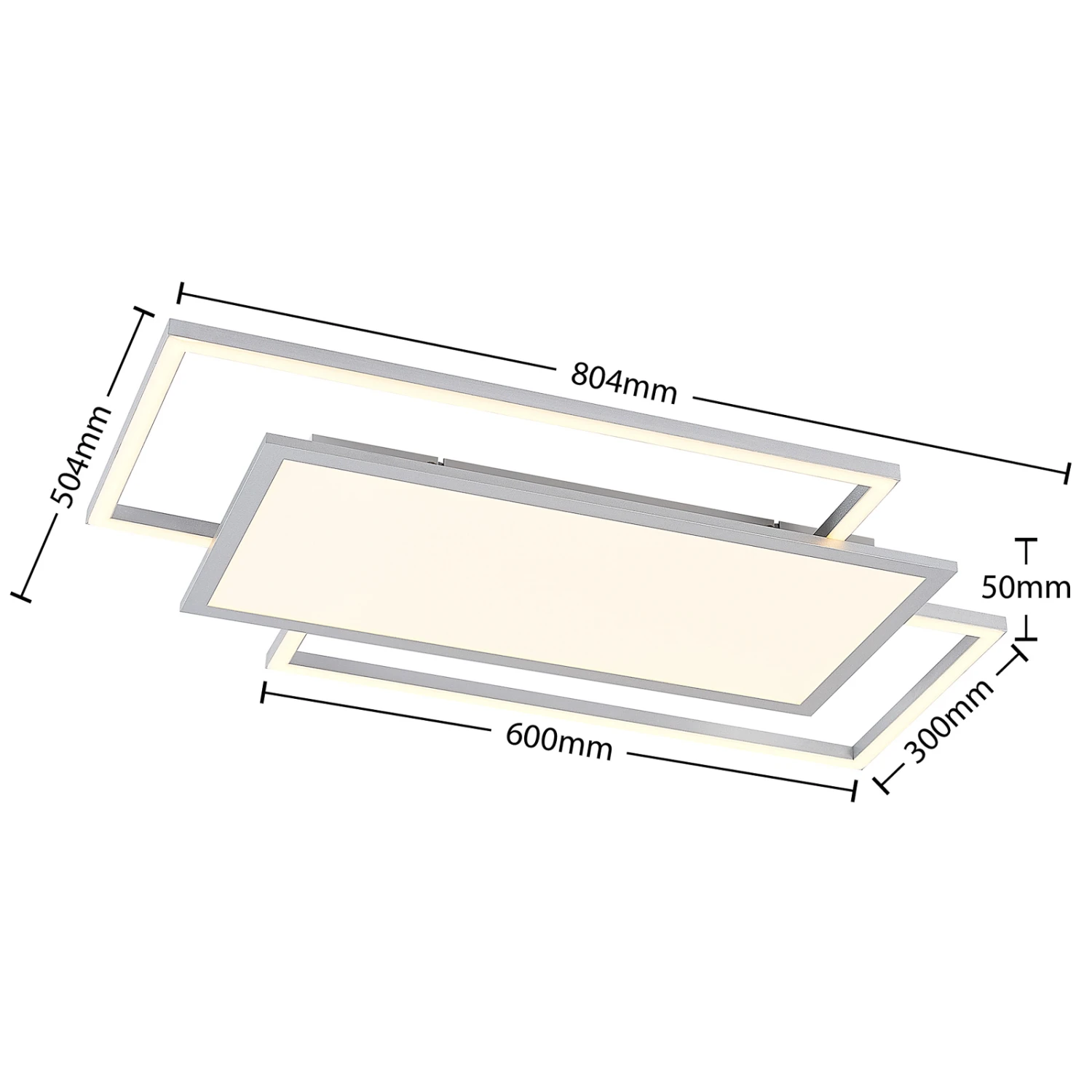 Die LED-Deckenlampe Ciaran aus Aluminium und Eisen überzeugt mit ihrem attraktiven, rechteckigen Aussehen. An den eckigen Elementen verlaufen festverbaute LEDs, welche mit Hilfe eines Wandschalters oder einer Fernbedienung hinsichtlich ihrer Lichtfarbe (2.700 K, 4.000 K und 6.500 K) und stufenlos in ihrer Helligkeit (10% – 100%) gedimmt werden kann. Dies macht sie zu einer flexiblen Lichtspenderin und sorgt immer für die richtige Ausleuchtung. Durch den Nachtmodus spendet sie selbst in dunkleren Abendstunden ein perfektes Licht zum Orientieren und ermöglicht mit ihrer Memory-Funktion das mühelose Speichern von vorher getroffenen Einstellungen. Diese Maß an Flexibilität und Zweckmäßigkeit macht die LED-Deckenleuchte Ciaran perfekt für die Installation in einem Wohnzimmer oder einem Schlafzimmer, sie macht aber auch in anderen Räumen eine super Figur. Das eher dezente und geschmackvolle Äußere setzt attraktive Akzente an Wohnungsdecken und integriert sich mühelos in das restliche Mobiliar.