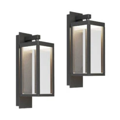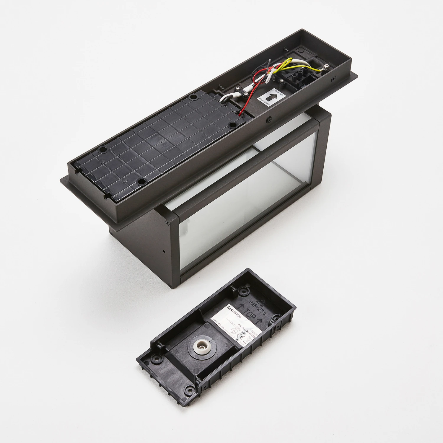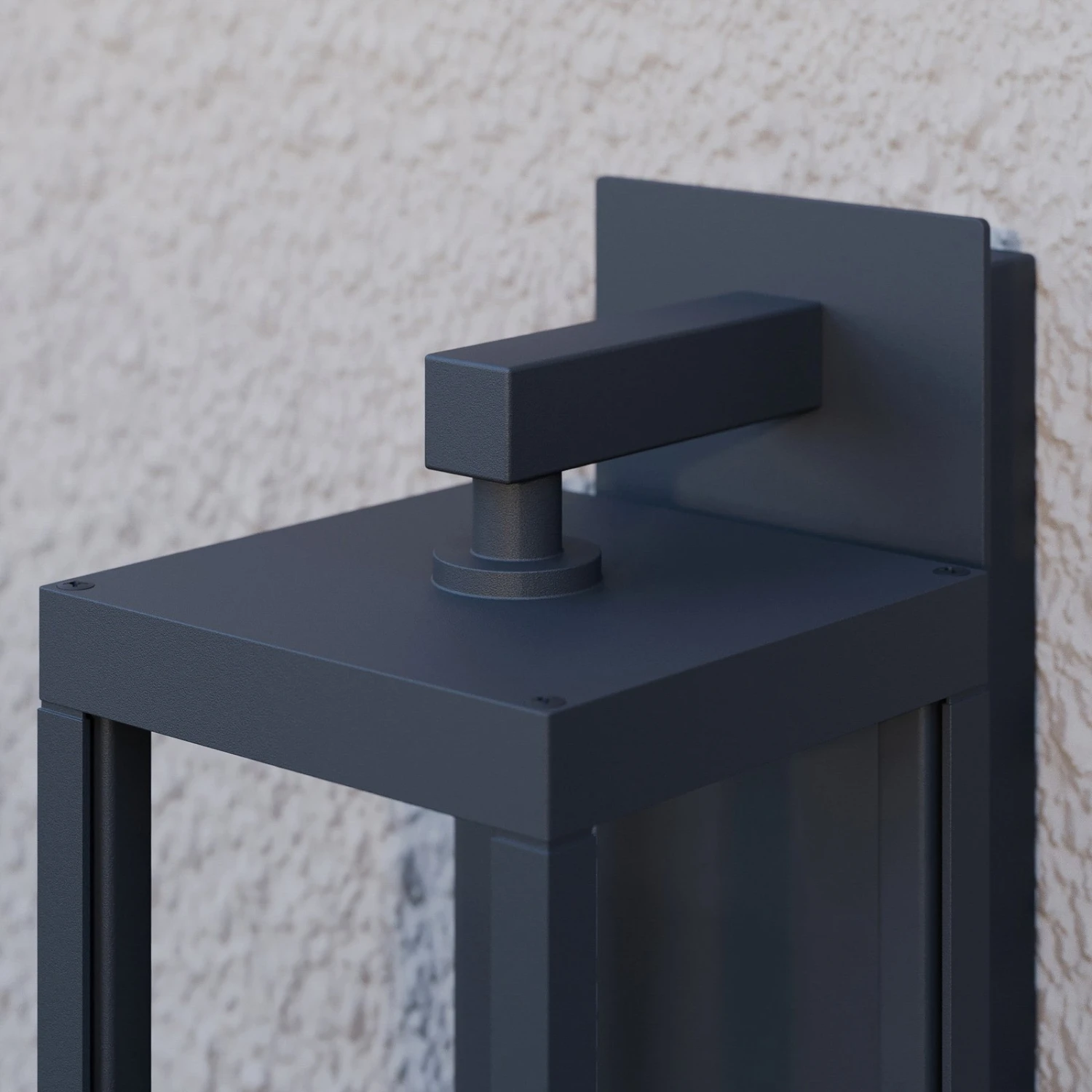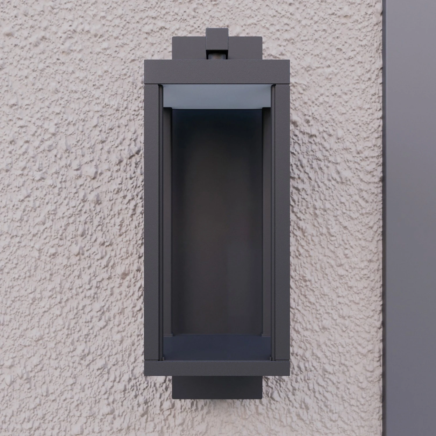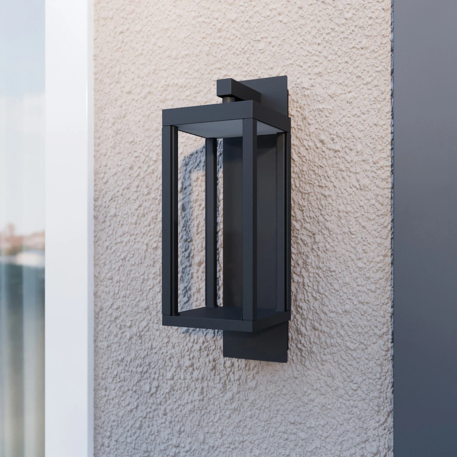 Diese LED-Außenwandleuchte hat ein dunkelgraues Metallgestell, das ergänzt wird von klaren Glasscheiben, die den vollen Durchblick gewähren. Daher geht auch nichts von der Leuchtkraft der LEDs verloren und man kann mit der Außenwandlampe eine gute Helligkeit rund um das Haus erzielen.