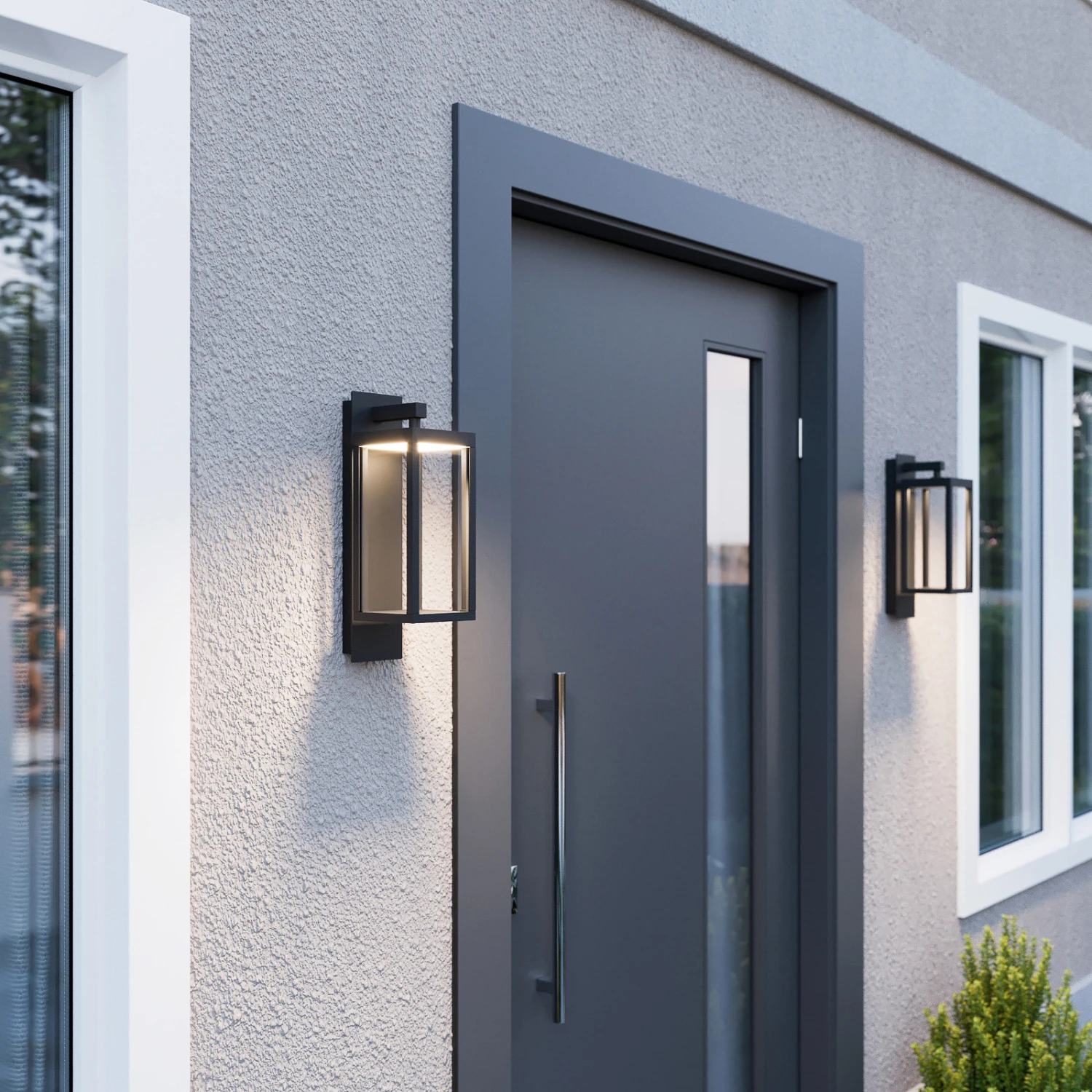 Dunkelgraue LED-Außenwandleuchte Ferdinand mit klaren Glaseinsätzen im 2er-Set – prämiert mit dem Reddot Award 2018