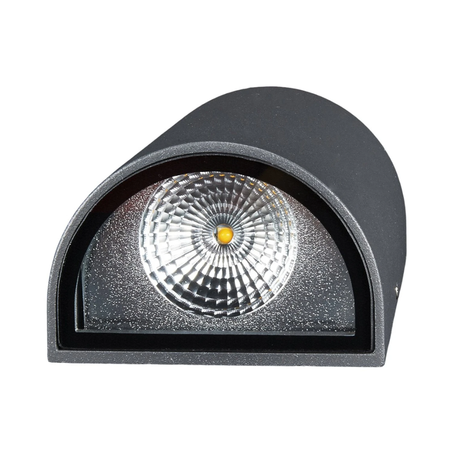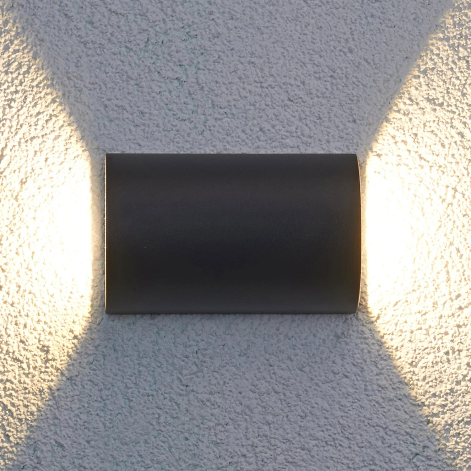 Halbrund in der Form, erweckt die LED-Außenwandleuchte Jale einen harmonischen Eindruck. Das Design ist dezent und zeitgemäß, der Lichtschein effektvoll, denn sowohl nach oben als auch nach unten entweicht er in einem breiten Winkel. An einer Hauswand angebracht, kann man dieses schöne Licht schon von Weitem sehen und neben der Anbringung von nur einer LED-Außenwandleuchte kann man auch ohne Probleme mehrere davon anbringen, was dem Gesamtkonzept dann immer einen edleren Ausdruck verleiht und beim Betrachter den Anschein erweckt, dass die Beleuchtung aufeinander abgestimmt ist. Die LED-Leuchtmittel scheinen warmweiß und liefern einen energieeffizienten Lichtschein.