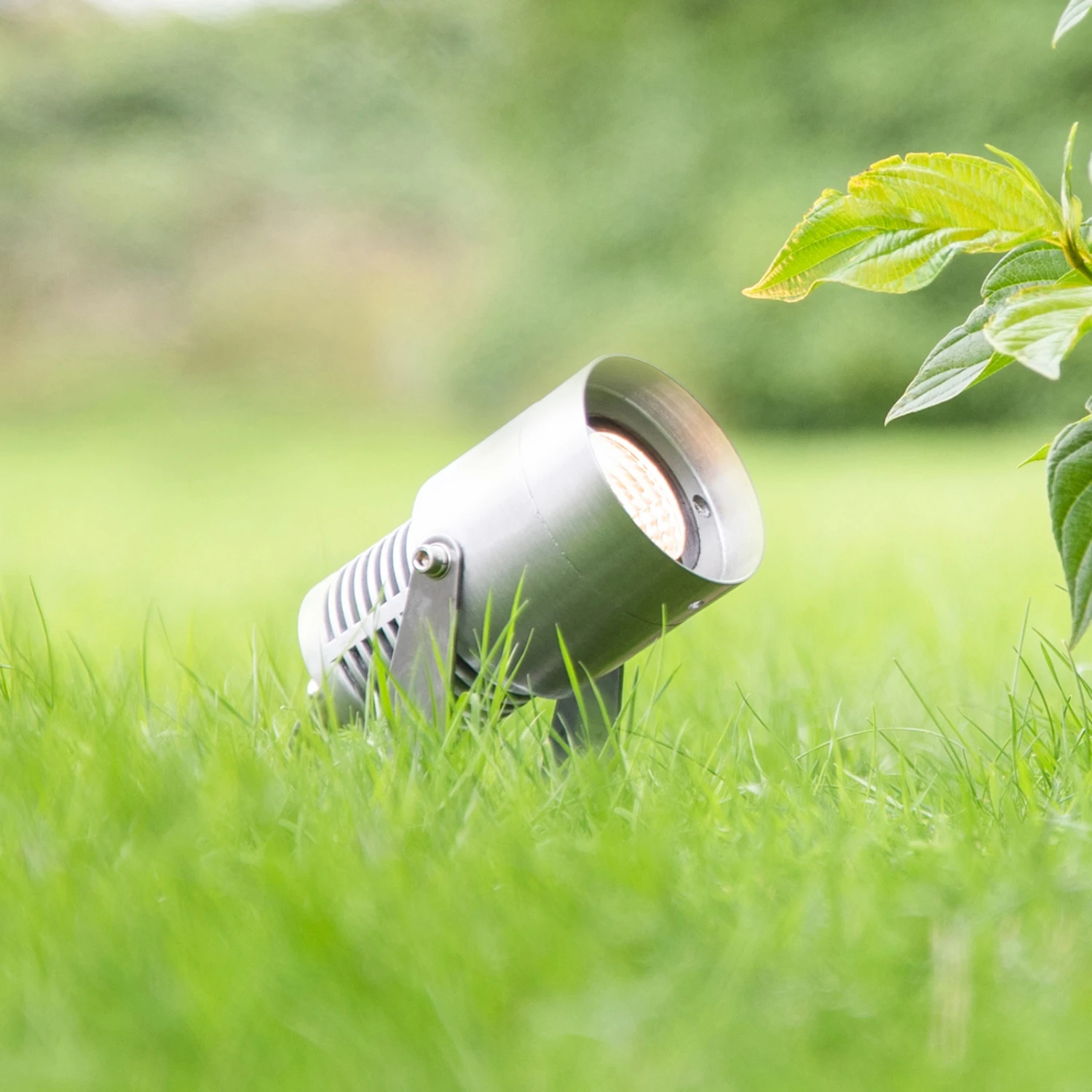 LED-Spotlight vom Garden 24V-System in ansprechendem Silber