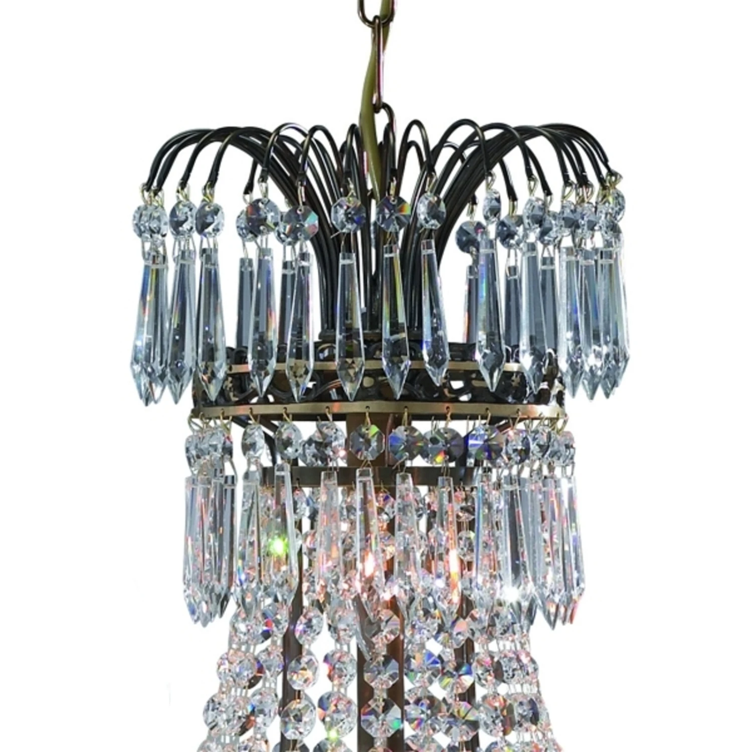 Dieser Kerzen-Kronleuchter ist ein wahres Schmuckstück. Der in verschiedenen Größen erhältliche Metallrahmen verleiht dem Leuchter sein klassisches Design. Unzählige Kristalle veredeln das Erscheinungsbild des Kerzen-Kronleuchters zusätzlich und sind außerdem für glanzvolle Beleuchtungseffekte verantwortlich. Zusätzlich abgerundet wird die imposante Erscheinung durch Kerzenhalter, in denen schlanke Stabkerzen für einen harmonischen Ausgleich sorgen. Auch ausgeschaltet verzaubert dieser Kronleuchter jeden Raum und ist ein wunderschöner Blickfang.