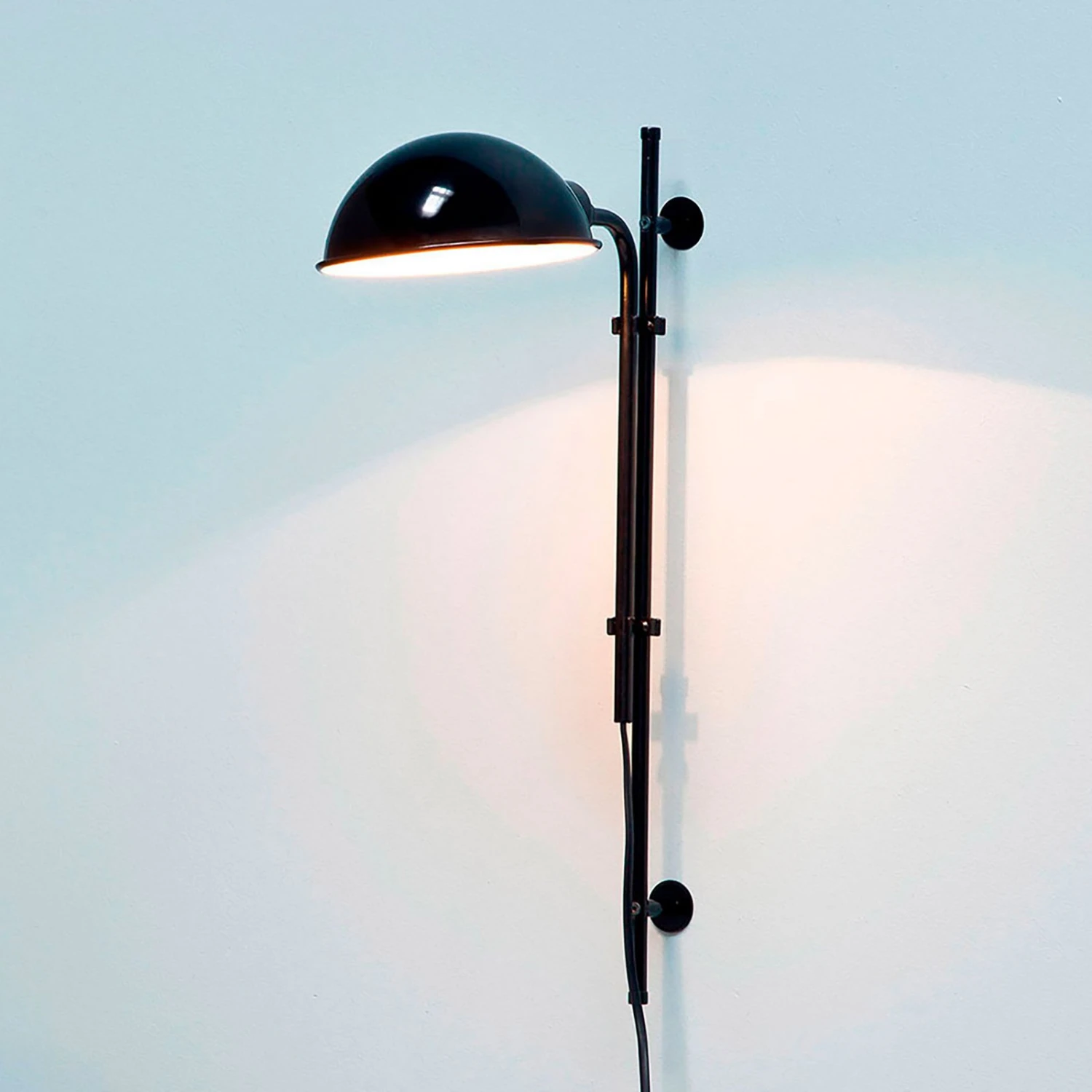 Design-Wandleuchte Funiculí – mondäner und einstellbarer Lichtspender mit Kabel und Stecker Diese optisch ungewöhnliche und sehr moderne Wandleuchte wurde von dem Designer Lluís Porqueras entworfen. Seine Mission beim Erfinden neuer Produkte liegt darin, sich auf das Wesentliche zu konzentrieren, sich von allem Überflüssigen zu entledigen und etwas visuell Ansprechendes, Nützliches und Schlichtes zu kreieren. Funiculí stammt aus dem Jahr 1979 und wurde 2013 von Marset überarbeitet. Funiculí verkörpert all die Ansprüche des Designers und kann sowohl für direkte als auch für indirekte Beleuchtung eingesetzt werden, denn der halbrunde, blickdichte Schirm aus Aluminium lässt sich individuell einstellen. Der Lichtkegel lässt sich bis zu 360 Grad drehen, wodurch der Lichtstrahl genau dort hin gelenkt werden kann, wo man ihn benötigt. Daher eignet sich die Wandleuchte auch ideal als Lichtspender neben dem Bett. Zusätzlich besteht die Möglichkeit, den Schirm in seiner Höhe auszurichten, was durch Klammern am Gestänge realisiert wird. Dank ihrer vielfältigen Funktionen, auch in Bezug auf die Anschlussmöglichkeiten, schafft es diese Wandlampe bereits seit vielen Jahren stets im Trend zu sein. – eine runde Wandbefestigung ist im Lieferumfang enthalten – Schalter am Zuleitungskabel
