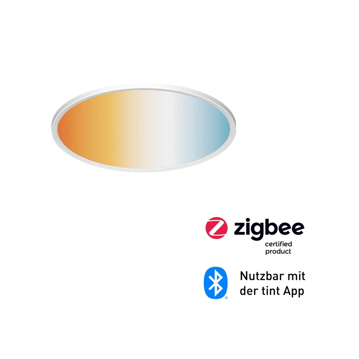 Die LED-Leuchte verfügt über zahlreiche Funktionen, beispielsweise ist es möglich, die Helligkeit der Deckenlampe stufenlos zu regulieren und die Farbtemperatur von warm- zu tageslichtweiß zu variieren. So lassen sich im Handumdrehen für jede Situation die passenden Lichtverhältnisse realisieren. Zudem können bereits vorhandene Lichtszenarien aktiviert oder Lichtgruppen zusammengestellt werden. Die Steuerung erfolgt entweder über die tint-Fernbedienung (nicht inklusive), per App über ein ZigBee-basiertes Smarthome-System, über Sprachbefehle oder direkt via Bluetooth mit der tint Smart Light App ohne weiteres Zubehör.